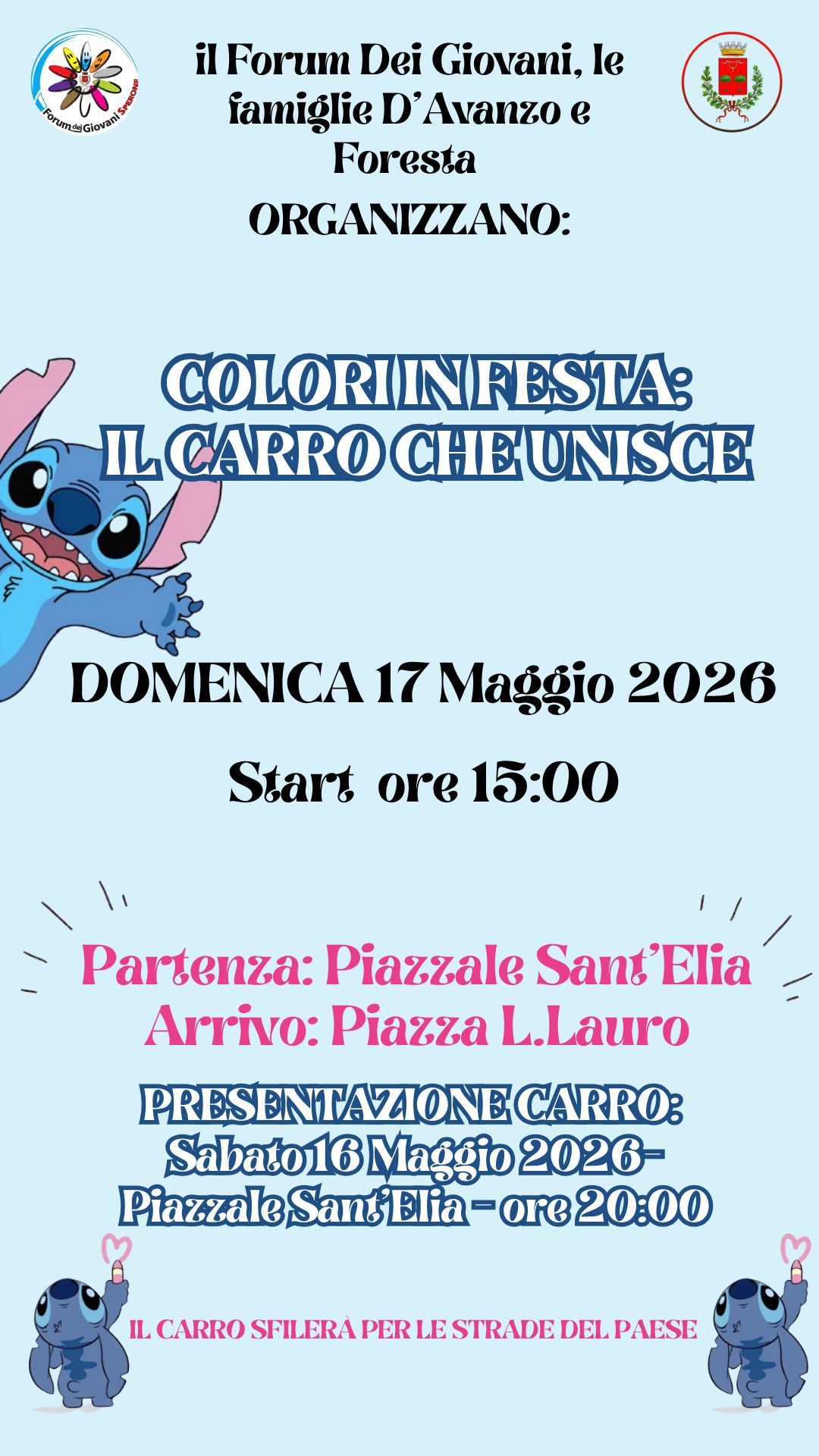 Sarà un fine settimana all’insegna della gioia, della condivisione e della partecipazione quello in programma a Sperone, dove il Forum dei Giovani, insieme alle famiglie D’Avanzo e Foresta, promuove l’iniziativa “Colori in festa: il carro che unisce”.