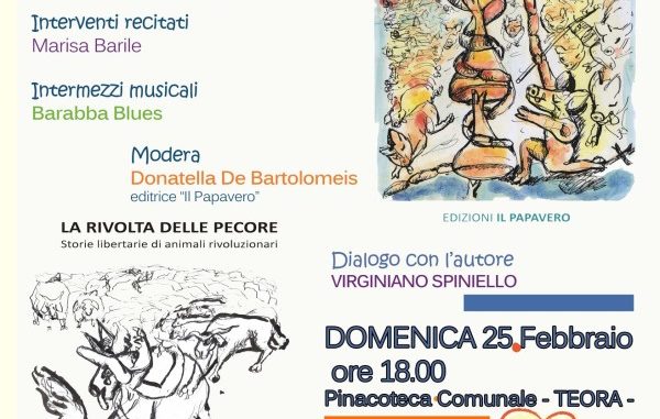 Domenica 25 febbraio alle 18.00, nella Pinacoteca comunale di Teora, arrivano la Rivolta delle pecore e la Battaglia dei prosciutti, le Storie libertarie di animali rivoluzionariscritte da Virginiano Spiniello per le Edizioni Il Papavero.