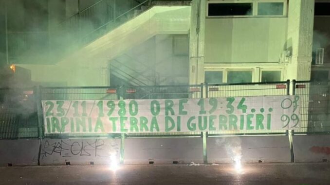 HomeAlta irpiniaStriscione degli Original Fans in ricordo del sisma: “Irpinia terra di guerrieri”.