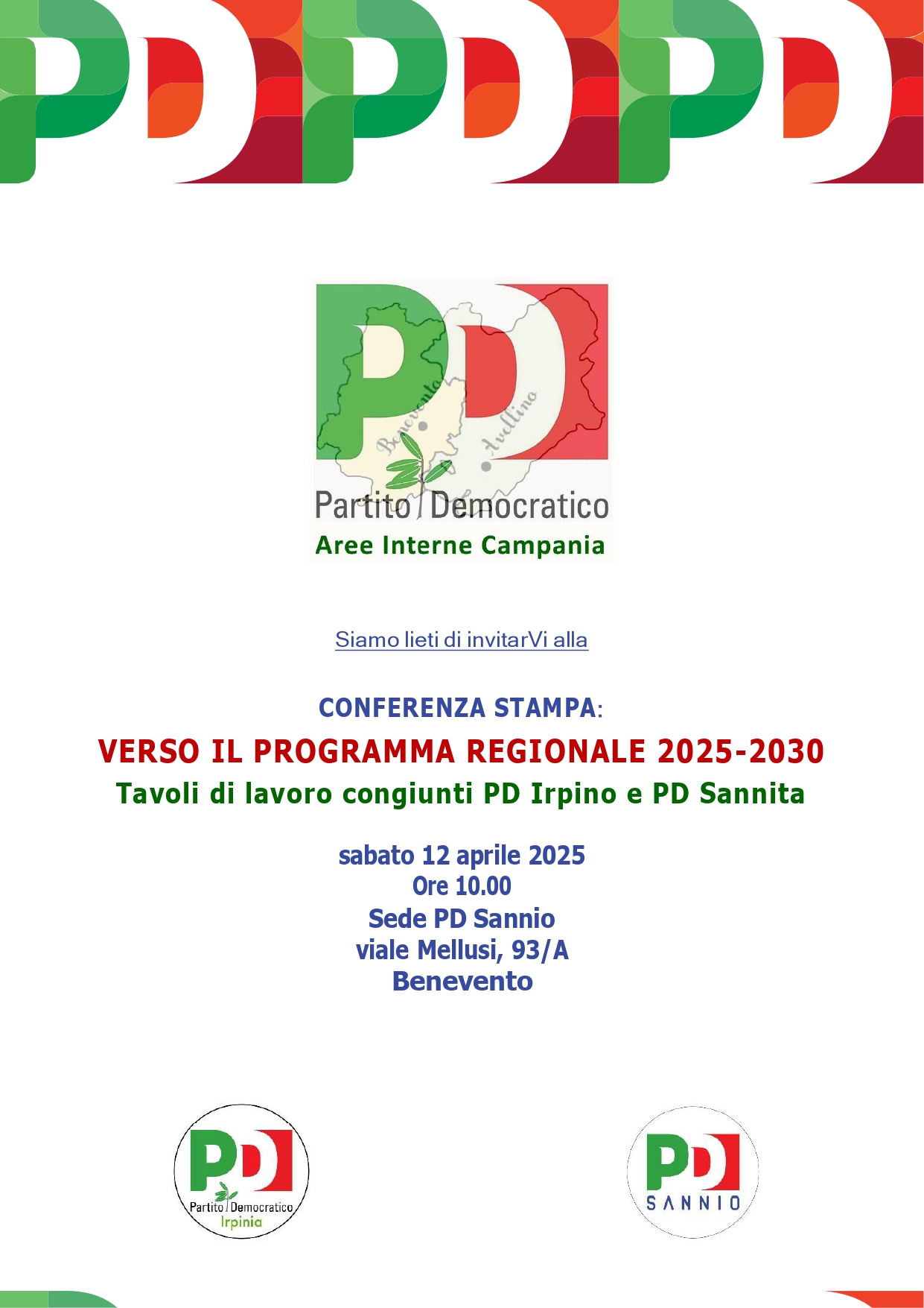 In vista dell’appuntamento elettorale regionale del prossimo autunno, le segreterie provinciali del Partito Democratico di Avellino e Benevento, consapevoli del comune destino dei propri territori, hanno inteso avviare un lavoro congiunto di analisi e proposta politica con l’obiettivo di elaborare un documento unitario che qualifichi, vincolandolo, il programma di mandato del centro sinistra campano nel quinquennio 2025-2030.