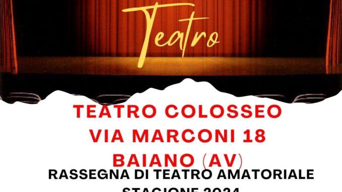 Nuova iniziativa per l’Associazione MELA che organizza “Vieni una sera a Teatro”, rassegna di teatro amatoriale che aprirà la stagione 2024 e si svolgerà ad Aprile nel Teatro Colosseo di Baiano (AV).