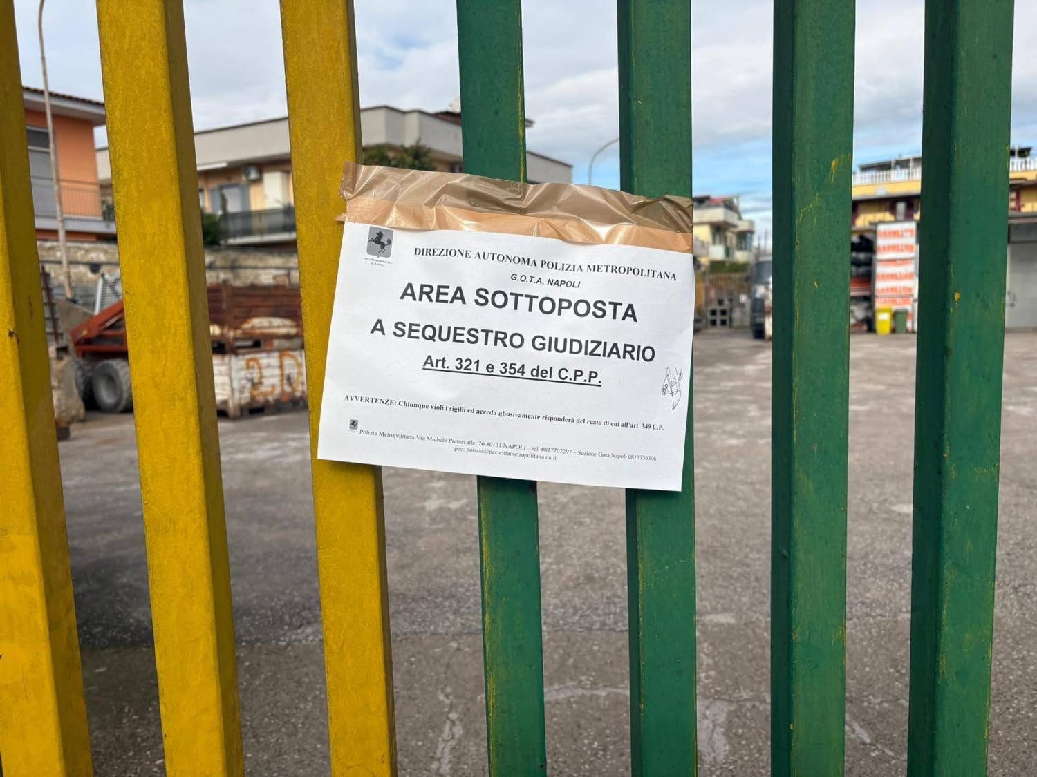 Ad Arzano è stata sequestrata un’area di circa 600 metri quadrati utilizzata abusivamente come parcheggio e autolavaggio, mentre a Sant’Antimo è stata posta sotto sequestro un’area di 900 metri quadrati impiegata da un’impresa edile senza le necessarie autorizzazioni commerciali e per lo scarico in fognatura.