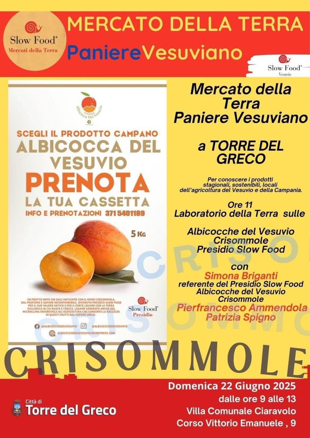 Al centro di questa giornata ci saranno le crisommole, le storiche albicocche del Vesuvio, frutto simbolo dell’identità agricola vesuviana e presidio Slow Food per il loro sapore intenso, il profumo inconfondibile e il profondo legame con il territorio. Coltivate da secoli grazie al microclima favorevole del vulcano, le crisommole sono oggi tutelate e promosse per il loro valore storico, culturale e alimentare.