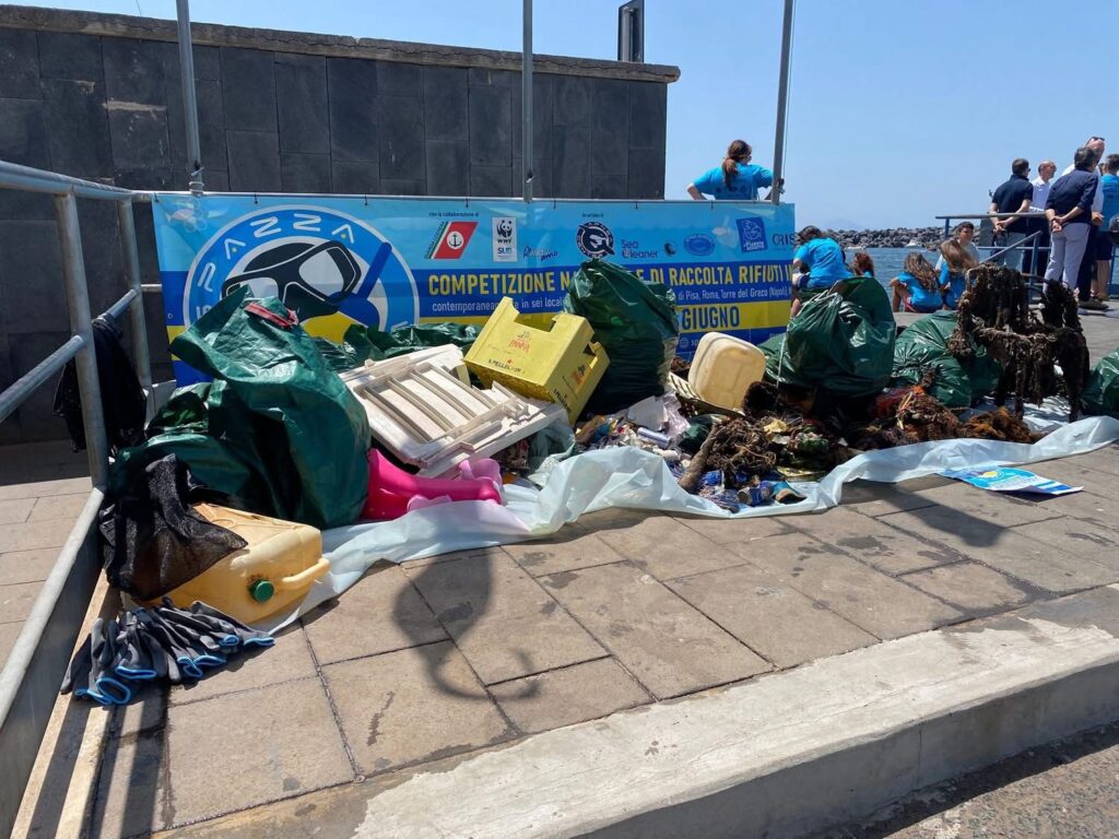 Oltre cento chili di rifiuti sono stati recuperati dai fondali e dalle spiagge del litorale di Torre del Greco grazie all’impegno di una cinquantina di volontari che hanno partecipato all’iniziativa promossa dal coordinamento Spazzapnea OdV, ospitata presso il Circolo Nautico cittadino.