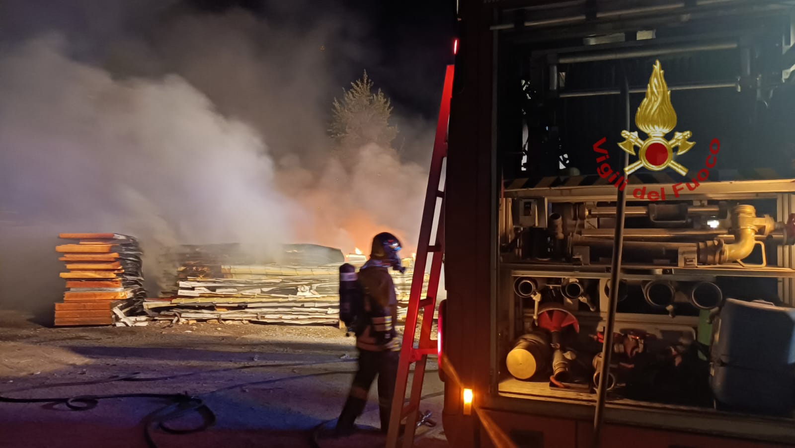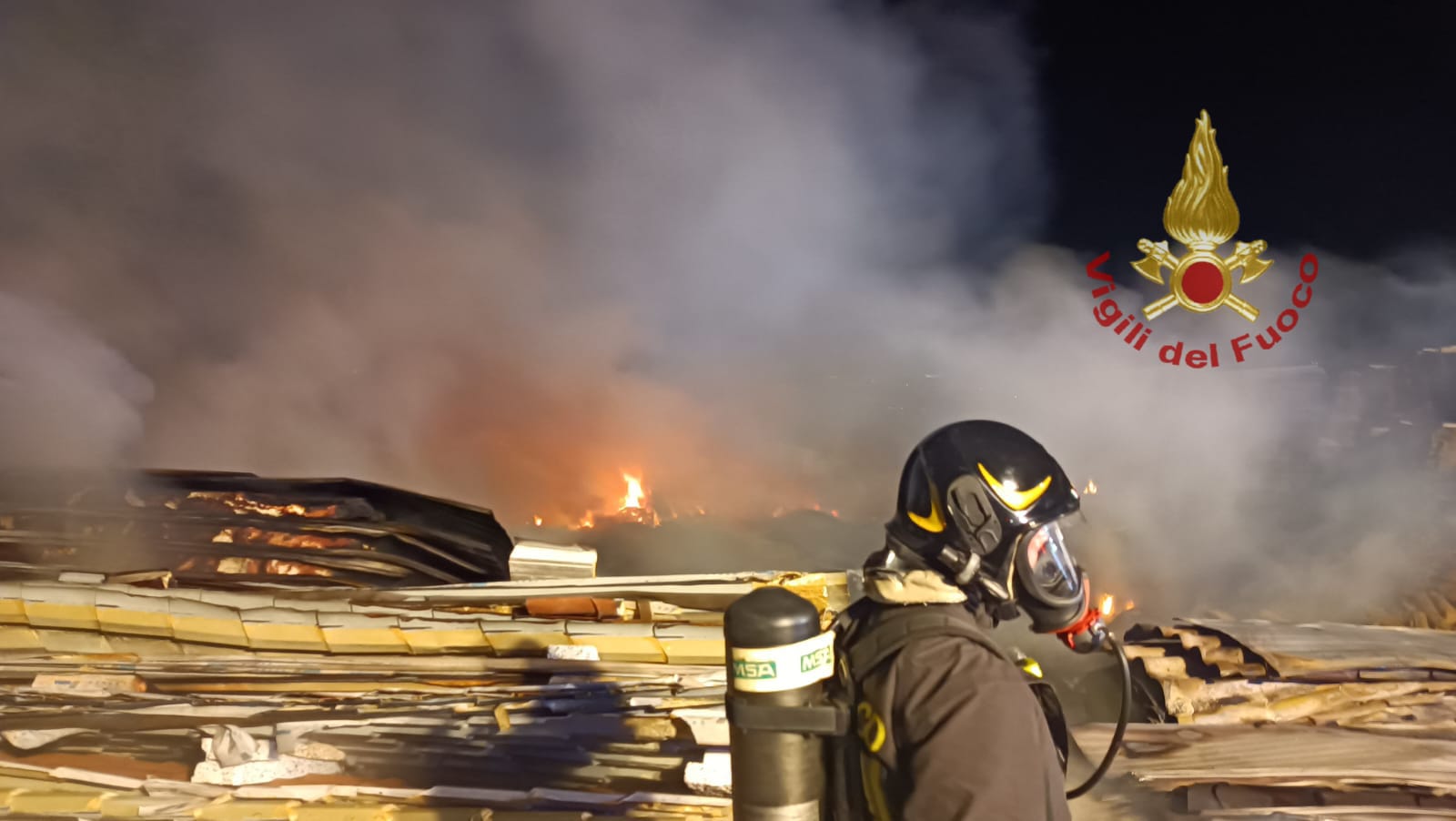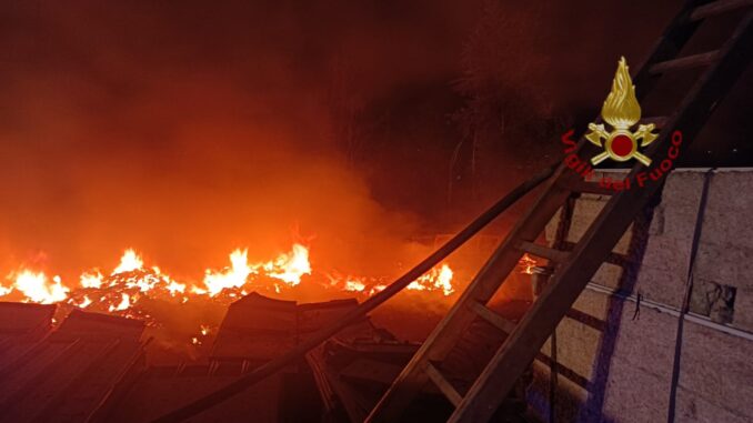 TORRE LE NOCELLE (AV). A fuoco deposito di pannelli per la coibentazione. Fiamme visibili a chilometri di distanza