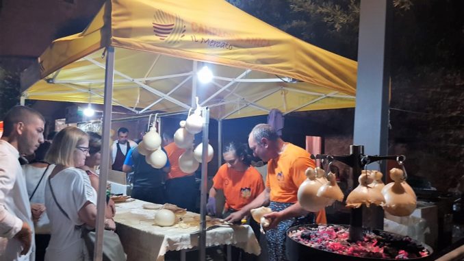 Caggiano: un agosto ricco di eventi, mostre, concerti e sagre. Ieri sera grande partecipazione di pubblico alla interessante Sagra dei Crusicch’. Un programma ricco di eventi a Caggiano, iniziato già a inizio agosto con il Percorso Culinario nelle strade del centro storico e proseguito con la Notte Bianca in Piazza Lago domenica scorsa. Da anni il Ferragosto Caggianese racchiude tanti eventi caratterizzati da musica, divertimento, cultura e tradizione culinaria. Infatti ieri sera si è svolta la 35^ edizione della Sagra dei Crusicch’, una manifestazione che ha come protagonisti i cavatelli fatti rigorosamente a mano dalle mani esperte delle donne di Caggiano, conditi con il sugo di agnellone. Caggiano, Terra dei Templari e del buon cibo si contraddistingue da sempre per l’utilizzo di materie locali e per l’immenso patrimonio enogastronomico. Il programma del ferragosto continua con la presentazione, questo pomeriggio presso il Palazzo Morone, del libro “Affinchè tu possa capire” di Giuseppe Vecchio e questa sera con l’esibizione del Gruppo Folk di Caggiano e di altri gruppi italiani e esteri. Caratteristica la Caccia al Tesoro che si svolgerà domani 14 agosto in tutto il territorio, richiamando tanti giovani del