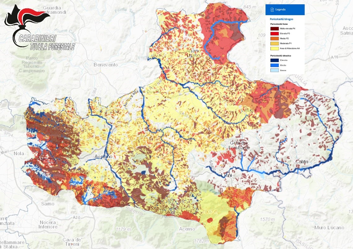 • ha elevato sanzioni amministrative per un totale di euro 2.690,00.muni della provincia irpina, prevalentemente montani, il fenomeno dell’abusivismo edilizio, il taglio furtivo delle piante, l’abbruciamento dei residui vegetali con conseguente incendio boschivo, il cambio di destinazione dei fondi agricoli in altre colture agrarie e la sempre più frequente realizzazione di aree industriali in prossimità di corsi d’acqua, sono le cause di diffusi e frequenti fenomeni di dissesto idrogeologico.Un anno di attività dei Carabinieri del comando provinciale e del Gruppo Forestale di Avellino.Come si evince dalla foto, le macchie di colore marrone presenti nell’area del Vallo-Lauro-Baianese, del Monte Partenio, dei Monti Picentini e la zona ai confini con la Regione Puglia, nonché la presenza di corsi d’acqua e bacini idrici, sono elementi che rivelano una fragilità territoriale dal punto di vista idrogeologico.Il Gruppo Carabinieri Forestale di Avellino, al fine di prevenire e mitigare i dannosi e drammatici effetti derivanti da eventi franosi ed alluvionali, anche in esito alle Convenzioni stipulate con la Regione Campania e con gli Enti Parco del Partenio e dei Monti Picentini effettua costantemente la propria azione di presidio e di lotta alle violazioni in materia di tutela dell’assetto idrogeologico nonché urbanistico- edilizio.