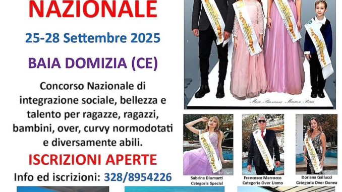 Torna uno degli appuntamenti più attesi del panorama nazionale dedicato a inclusione sociale, bellezza e talento: la VI edizione del Concorso Nazionale “Una Ragazza, un Ragazzo e un Bambino per lo Spettacolo”, in programma dal 25 al 28 settembre 2025 a Baia Domizia (CE).