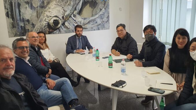 In particolare, l’incontro con il Kmi di Seul, è stata un’opportunità per far conoscere, una significativa realtà produttiva come Eurofish Napoli, in grado di coniugare esperienza ed innovazione, e gli interventi effettuati alla Darsena Pescatori del Porto di Acquamorta  nel 2019 e 2020 dal FLAG Pesca Flegrea, destinati alla piccola pesca costiera. Progetti portati a termine con i fondi del FEAMP Campania per incrementare il decoro urbano della darsena, migliorare le condizioni di lavoro e di sicurezza degli operatori e aumentare le opportunità di vendita e valorizzazione del pescato”.
