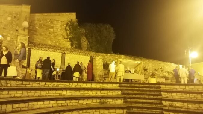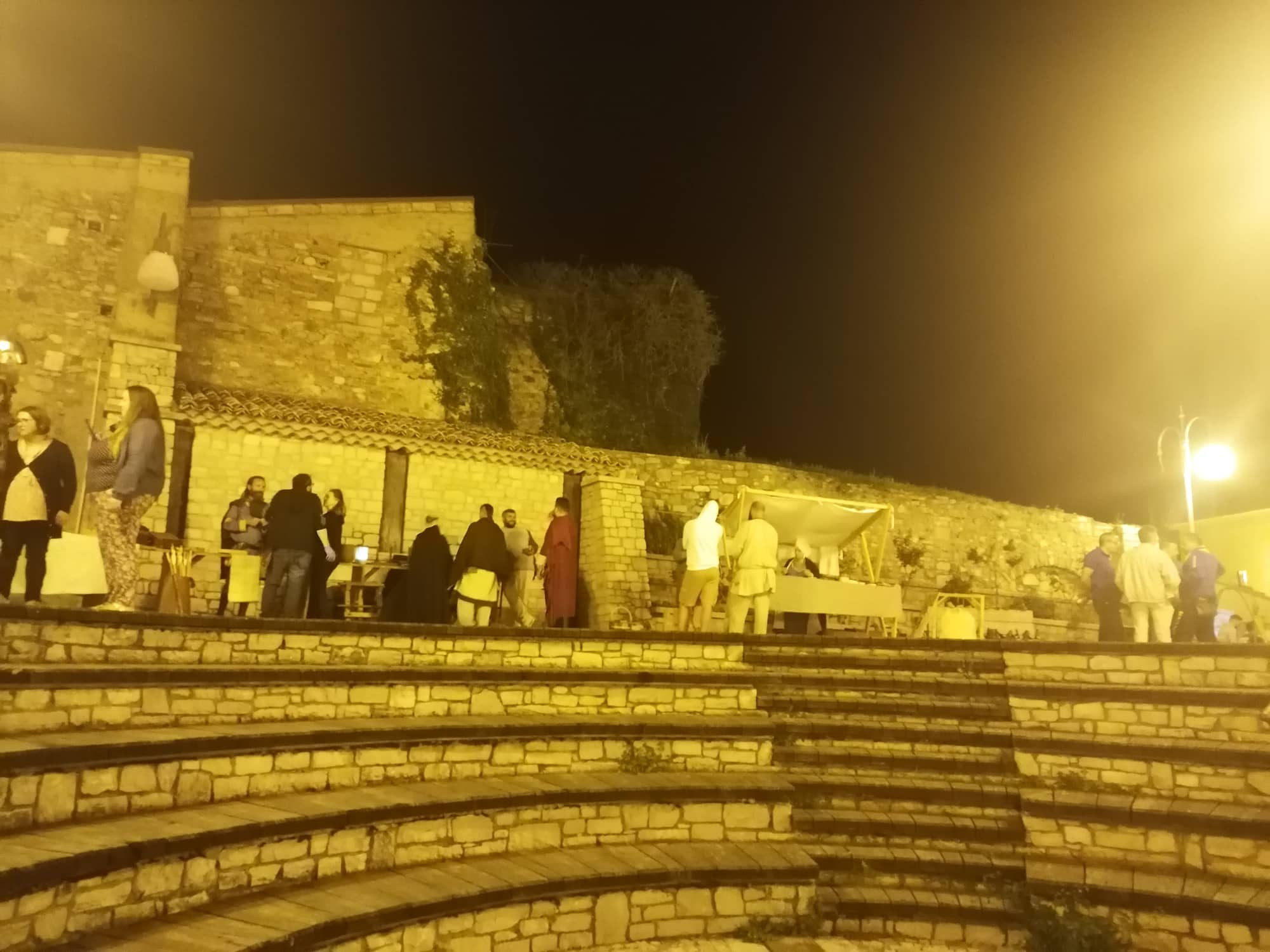 In una sorprendente serata calda nonostante il mal tempo che ha caratterizzato la giornata e che forse ha scoraggiato un pubblico più vasto, rivissute le atmosfere di altri tempi ed apprezzata la maestria degli artigiani medievali, le tecniche e gli attrezzi rudimentali che rappresentano le basi delle produzioni moderne. Affascinante e molto complessa, ad esempio, la realizzazione di una pergamena o di una candela o di un paio di sandali, tutti realizzati, grazie ad approfondite e continue ricerche, rispettando fedelmente le tecniche ed i materiali dell’epoca. E poi lo scriptorium alto-medievale per conoscere le modalità di scrittura e miniatura, massima espressione della cultura longobarda meridionale, ed ancora l’orditoio ed altri utensili per poter lavorare alla filatura e alla tessitura delle tele. Veri e propri banchi didattici di archeologia sperimentale delle Civiltà Longobarda.