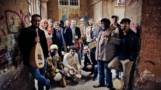 “Quando l’Orchestra lavora alla scrittura di una canzone – sottolinea Pino Pecorelli, tra i portavoce del gruppo – pensa naturalmente a come funzionerà sul palco. È sul palco che questo gruppo si è formato, è cresciuto ed ha costruito il proprio linguaggio. E il concerto è il risultato di un lavoro che dura da anni ed è la fotografia del percorso musicale del gruppo sulla forma canzone”. Sul palco del Gesualdo si esibiranno i musicisti Houcine Ataa (Tunisia – voce), Emanuele Bultrini (Italia – chitarre), Peppe D’Argenzio (Italia – sax baritono e soprano), Awalys Ernesto Lopez Maturell (Cuba – batteria), Omar Lopez Valle (Cuba – tromba, flicorno), Carlos Paz Duque (Ecuador – voce, flauti andini), Pino Pecorelli (Italia – contrabbasso, basso elettrico), Duilio Galioto (Italia – pianoforte e tastiere), El Hadji Yeri Samb (Senegal – percussioni e voce), Raul “El Cuervo” Scebba (Argentina – percussioni), Kaw Dialy Mady Sissoko (Senegal – voce, kora), Ziad Trabelsi (Tunisia – oud, voce), Mario Tronco (Italia – direzione).