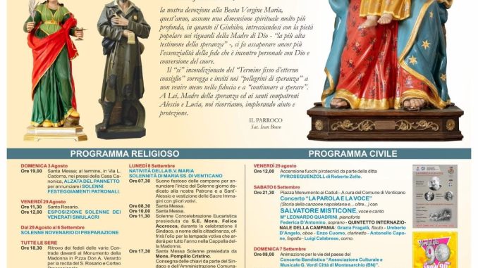 Dal 6 all’8 settembre 2025 la comunità celebra Maria SS.ma di Venticano, S. Alessio e S. Lucia V. e M.