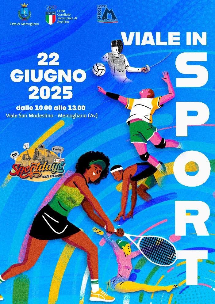 Domenica 22 giugno 2025, dalle ore 10.00 alle 13.00, Viale San Modestino a Mercogliano si animerà con Viale in Sport, l’iniziativa promossa dalla Pro Loco Mercogliano in collaborazione con il Comune e il CONI – Comitato di Avellino.