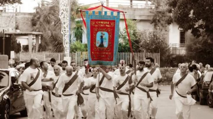 VISCIANO in FESTA. E il giorno dei Battenti della MadonnaCon divisa bianca e nastro rosso sfilano i BATTENTI (fujenti) per le strade e il corso principale di VISCIANO. Tradizione che risale al ’43 (anno in cui è nata la tradizione) e negli anni si è ripetuta ogni anno il lunedì della festa. È un tributo alla Madonna per grazia ricevuta. Quest’oggi la fiumana di ‘penitenti'(oltre 1500) con la BANDIERA in testa (quest’anno andata a RAFFAELE SPIEZIA) di buon mattino dopo aver partecipato alla Santa Messa nel Santuario sono partiti (a piedi scalzi) dalla postazione dove è stata esposta la BANDIERA in via Camaldoli (Palazzine) e raggiunto attraverso strade rurali il Santuario della Madonna dell’ABBONDANZA in MARZANO DI NOLA nel Vallo di Lauro. Poi attraverso la strada normale si è proseguiti per il centro di LIVERI, frazione di LIVARDI, SAN PAOLO BELSITO e il centro di NOLA, da via San Paolo, via Tansillo e via San Felice-Vescovado. Poi piazza Duomo con una delegazione che si reca in Cattedrale per rendere omaggio a San Paolino deponendo fiori sulla tomba del Santo vescovo. Quindi ci si immette attraverso via on. Francesco Napolitano (ex via Cimitile) sulla 7/bis definito ‘migl’e valle’ strada più dura e tortuosa con asfalto bollente viste le alte temperature del periodo, ma la situazione meteo potrebbe alleggerire le fatiche dei partecipanti al pellegrinaggio. Qui c’è la Polizia del commissariato di Nola che cerca di far defluire il traffico ed evitare che curiosi creino difficoltà durante il tragitto. Àrrivati e SCHIAVA ci si immette sulla provinciale per VISCIANO e bretella autostradale A/16 NAPOLI-BARI dove troneggia il monumento dedicato a PADRE ARTURO, padre degli orfani che sarà inaugurato mercoledì 25 alla 17,30. L’arrivo e VISCIANO è previsto verso le 11 e ingresso in Santuario con deposizioni di fiori e cari davanti alla MADONNA. Per il servizio d’ordine e sicurezza oltre alle forze dell’ordine (Carabinieri e Polizia) ci sono le varie Protezioni civili, in particolare L’ATAPC coordinata da Gioacchino Iovino che effettua assistenza sul sagrato e interno del Santuario. ATAPC che da qualche anno ha anche in dotazione un debifrillatore all’interno del Santuario e stanza per assistenza in caso di emergenza. Per la viabilità oltre alle POLIZIA municipale dei comuni interessati (MARZANO,LIVERI,SAN PAOLO BELSITO, NOLA, CIMITILE, TUFINO, CASAMARCIANO E VISCIANO) vi sono le Protezioni civili comunali. Nicola Valeri