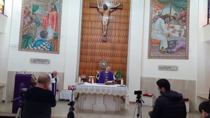 VISCIANO. Santa Messa in streaming  e benedizione dallalto del Campanile del Santuario di Padre Domenico La MannaAnche questa domenica, come recita la direttiva del governo, le sante messe domenicali si sono celebrate a porte chiuse impedendo l’ingresso ai fedeli nella Cappella della Riconciliazione dove sono ubicati i confessionali attigua al Santuario. Presenti solo gli operatori di Visciano Più, Visciano TV e il reporter Salvatore Montanaro per la diretta web sulla pagina on line “Padre Arturo D’Onofrio”, nonchè i volontari dell’ATAPC Protezione Civile per il servizio interno e sul sagrato del Santuario. Il rettore del Santuario, Padre Domenico La Manna, dopo mezzogiorno ha impartito la benedizione al Paese dalla Torre campanaria del Santuario chiedendo alla Madonna del CARPINELLO di intercedere Dio Onnipotente per liberare la comunità, la Campania, l’Italia e il mondo da questa prova  terribile della pestilenza come nel 1520 in cui venne rinvenuta sotto un CARPINE l’Immagine della Madonna. È anche allora numerosi appestati vennero unti dal prodigioso olio Benedetto rinvenuto sotto al Carpine, accanto al Quadro della Madonna che è custodita nel Santuario.     Nicola Valeri