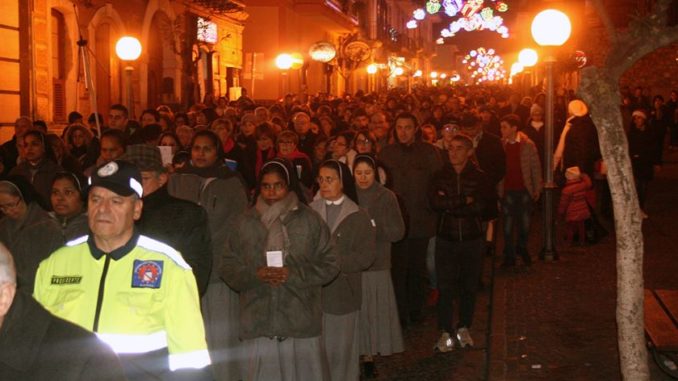 Nonostante la avverse condizioni meteo si è tenuta regolarmente la processione di Santa Lucia è Sant’Aniello venerati a Visciano. Nel paese collinare dell’area nolana ogni anno il 14 dicembre vi è la festa liturgica di Sant’Aniello, per l’occasione sia Santa Lucia che Sant’Aniello vengono portati in processione. Un Rito sacro e di tradizione che vede la partecipazione delle associazioni locali e dei fedeli, che al suono di marce sinfoniche percorrono le stradi principali del paese. Non mancano gli spari di fuochi per salutare il passaggio delle due statue, cullate da fedeli e devoti. In testa al corteo il parroco, Padre Domenico La Manna oltre alle autorità locali.