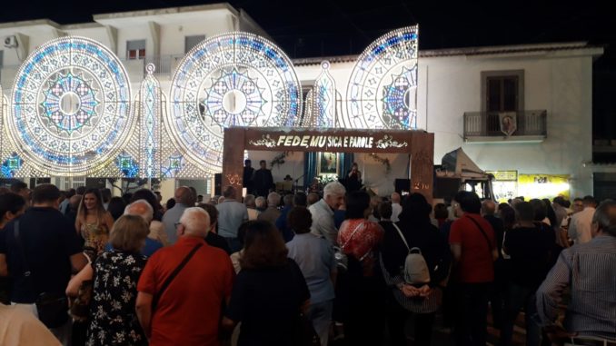 Di sera all’imbrunire il Carro lascia via Roma per dirigersi in via 24 Maggio dove verso le 20,30 sfilerà per il corso con le luci delle artistiche luminarie, la banda musicale, comitato festa con il presidente Felice Lanzaro, associazione Il Carro, Protezione Civile ATAPC, Vigili Urbani e Carabiniri; corteo che si dirige attraverso il Corso del CARPINE in Piazza Padre Arturo D’Onofrio dove il Carro si posizionerà davanti al Santuario è sotto al CARPINE per l’occasione.. Il Comitato Festa con il presidente accenderà un CERO davanti al monumento a Padre Arturo nell’omonima Piazza. Cero che resterà acceso tutto il periodo della Festa. Verso le 23 subito dopo la messa celebrata nel Santuario s’inizia con la solenne benedizione del Carro da parte di don Egidio Pittiglio per poi iniziare la kermesse di canzoni di Raffaele Montella, Sebastiano Addeo, Domenico Montanaro, Fioravante Meo, Antonio Foglia, Giovanna Ferrante, Ariosto Prodenziano e altri autori hanno scritto per la Madonna dal 1931 ad oggi. A presentare le canzoni l’immancabile Dario Rustichelli, Raffaella De Simone, Marilena Mirra, Domenico La Manna ed altri cantanti locali e non presentati da Mimmo Napolitano con la direzione artistica di Nello Sgambato e orchestra del fratelli Minale. Un evento sentito dai devoti della Madonna in particolare davanti al Santuario è sotto il CARPINE per poi fare il grande salotto fino alle 3 del mattino in Piazza Lancellotti.