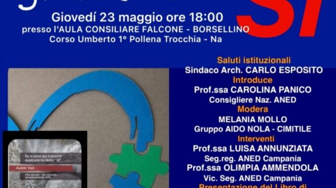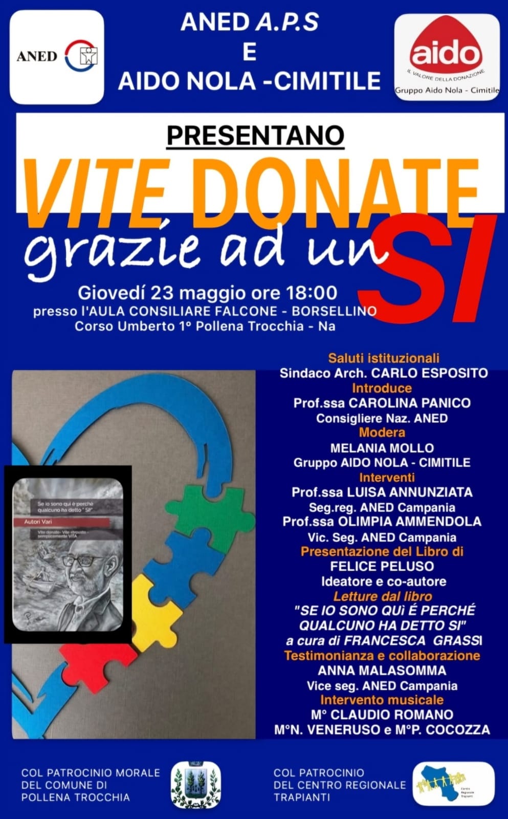 Un incontro per sensibilizzare alla donazione degli organi e ribadire il messaggio che grazie a un solo “sì” tante vite possono essere salvate. È questo quanto si prefigge l’iniziativa “Vite donate grazie ad un sì”, in programma giovedì 23 maggio a partire dalle ore 18:00 nell’aula consiliare “Falcone-Borselino” di Pollena Trocchia. Ricco il tavolo degli interventi. Dopo i saluti istituzionali del sindaco di casa, Carlo Esposito, prenderà la parola Carolina Panico, consigliere nazionale ANED, l’Associazione Nazionale Emodializzati Dialisi e trapianto, per l’introduzione al tema e all’incontro in generale. Seguiranno gli interventi del segretario regionale dell’ANED Capania, Luisa Annunziata, del vicesegretario Olimpia Ammendola, e del dottor Paolo Frattolillo, responsabile dell’ambulatorio trapianti dell’ospedale di Nola. Si passerà quindi alla presentazione del libro del presidente dell’AIDO (Associazione italiana per la donazione di organi) Nola-Cimitile, Felice Peluso, dal titolo “Se io sono qui è perché qualcuno ha detto sì”, testo dal quale Francesca Grassi proporrà alcune letture. L’incontro, moderato da Melania Mollo, del gruppo AIDO Nola-Cimitile, sarà arricchito dalla testimonianza di Anna Malasomma, vicesegretario ANED Campania e da un momento musicale a cura dei maestri Claudio Romano, Nunzio Veneruso e Paolo Cocozza. «Abbiamo patrocinato con convinzione questo evento perché riteniamo di estrema importanza affrontare tematiche delicate ma di grande rilevanza sociale come la donazione degli organi dinanzi ad un pubblico quanto più ampio possibile. Siamo sicuri che l’incontro, che mette insieme testimonianze, letture, interventi istituzionali e momenti musicali, saprà essere seguito ed apprezzato da tanti nostri concittadini, che invito in gran numero» ha detto Carlo Esposito, sindaco di Pollena Trocchia. Oltre al patrocinio del comune vesuviano, l’iniziativa gode anche del patrocino dell’Asl Napoli 3 e del Centro Regionale Trapianti.