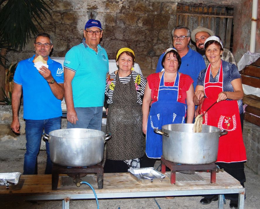 Il Presidente dell’evento siricano Sabatino Bonaventura, coadiuvato dal Presidente Sabatino Franzese dell’’Associazione. Socio-Culturale “M. Polverino” e dai Collaboratori Graziella Caliendo, Notaro Mariangela, Ciccone Giuseppe, Napolitano Michela e Napolitano Roberta, De Sio Luigi, Manzo Giovanni, Franco Caccavale, e Rossano Gaita e con l’assistenza dei giovani del Paese, nelle serate del 7 e 8 Ottobre 2023, hanno riproposto dopo tre anni di fermo a causa della Pandemia “Covid 19”, la Sagra Siricana “A sera d’ò nciucio” XVª Edizione. La festa di fine settembre, spostata quest’anno ad Ottobre, per motivi tecnici, Molto amata e voluta dai Siricani, mette in risalto i valori storici, artistici, culturali, ambientali e gastronomici di Sirico, frazione di Saviano. L’atmosfera del borgo antico di Sirico, arricchito da effetti scenografici e decorativi fa rivivere le antiche usanze del passato, con le sue strutture antiche, con i suoi prodotti gastronomici tipici e caserecci e con il suo paesaggio magico e surreale. Il fascino dell’ambiente antico di Sirico, abitato da persone vitali, energiche e generose, trae le sue risorse economiche dal lavoro agricolo, dall’artigianato, dall’arte e dalla cultura, che diventano motivo di stimolo per le nuove generazioni. La piacevole passeggiata, del 7 e 8 Ottobre 2023, parte dalla Piazza S. Giovanni B., con un ingresso tipico a un sipario teatrale, realizzato con tela di Juta e termina a Via S. Giovanni, con un identico sipario. Qui s’incontrano successivamente i v<ri punti di ristoro allietati dal sottofondo musicale di gruppi di paranze composte dalla tammorra, posteggia e strumentisti individuali, I punti di ristoro sono stati:, Cortile di Pupatella (Foto d’epoca e attrezzi antichi), Vicolo dei “Cap e Maglie” (a pizza fritta) – Largo Giacobbe (nocino e laurino), la Corte “Addò Baron” (e’ gnocchi incavat a man cu o’ rau e le bevande, Portone Brigadiere (Pizza Fritta) – Largo “Picazza” (a farinata) – sott ‘e Portun (Pinnoli e pestati cereali e vegetali), Portone di Bertina (melenzane dorate e fritte),alla Corte del Filippone di Giovanni Tufano (Artisti di Teatro), Vico e largo Tufano (Cacjo impiccato). Conclude la passeggiata il Largo “E’ Cap e Cuniglie” con i (Fasul ca cotica e trippa con patate) e l’esibizione del bravo cabarettista Peppe Sannino di Napoli. Tutte le pietanze presentate sono state preparate al momento a mano con gusto e raffinatezza dalle cuoche esperte del borgo. Tutto si è svolto nei due giorni all’insegna dell’allegria, divertimento, grazie anche alla Protezione civile richiesta, secondo la normativa. Al Presidente e a tutti i soci dell’Associazione vanno i complimenti e i meriti di aver gestito ed organizzato con maestria, professionalità ed impegno, ancora una volta, una delle più belle Sagre di fine estate del territorio Savianese.