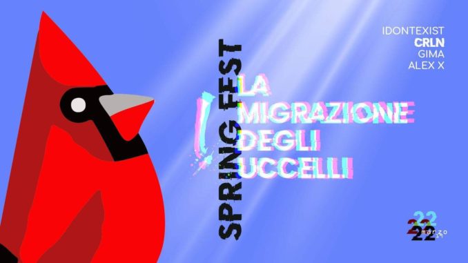 Il TILT apre il proprio SPRING FEST il 22 Marzo 2019, celebrando uno dei momenti più incredibili dell’anno: la migrazione degli uccelli. Per questa occasione, l’evento vedrà la partecipazione di artisti di rilevanza nazionale: dalla cantautrice CRLN, passando per “idontexist”, giovane rapper di Avellino, arrivando all’ospite Canntona.