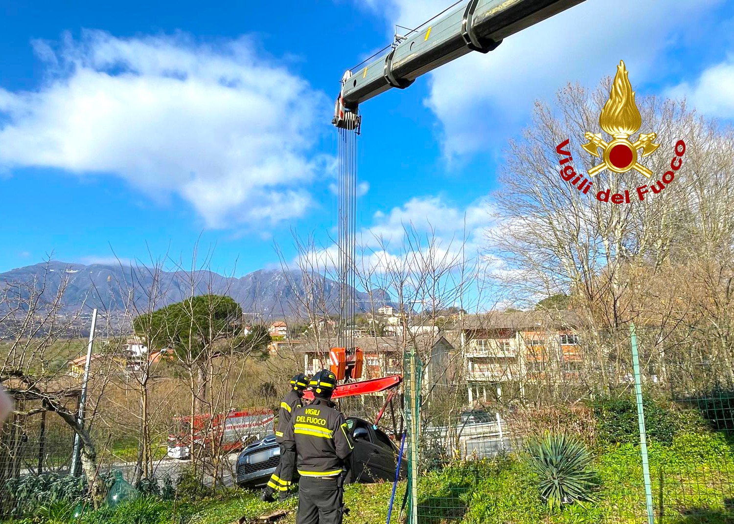 Auto finisce in una scarpata a Picarelli: donna ferita, intervento dei Vigili del Fuoco