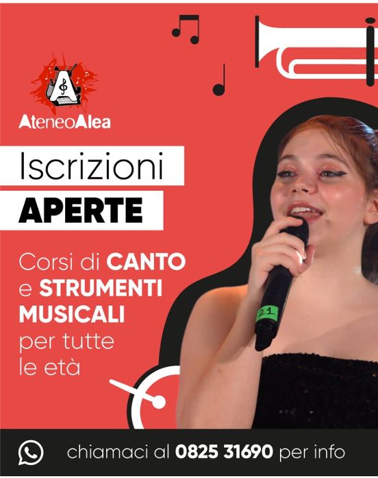 Sono aperte le iscrizioni al nuovo anno accademico 2024/2025, per i corsi di canto e strumenti musicali rivolti a tutte le età, presso l’Associazione artistica “Ateneo Alea” di Avellino.