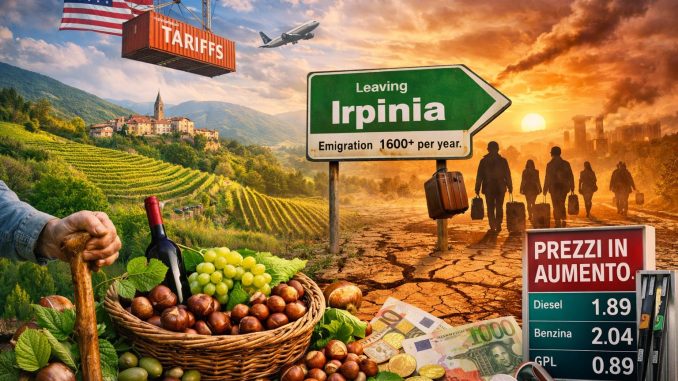 Il panorama economico Irpino appare attualmente abbastanza complesso pur sfoggiando diversi punti di forza degno di nota. Tra questi ultimi figura la peculiarità dell’ agricoltura irpina che segue ancora oggi metodiche e approcci di tipo arcaico millenario. Ciò significa che le colture vengono gestite ancora in maniera tradizionali, evitando metodiche intensive che penalizzano la qualità degli output. Difatti, diversamente da quanto accade nell’ agricoltura della Piana del Sele e della Piana del Volturno votate ad un’ attività primaria che massimizza solo la quantità, le colture irpine vengono trattate con spiccata propensione qualitative. A tale scopo le imprese sono squisitamente allineate a dimensioni piccole e medie, mentre la gestione delle stesse e’ squisitamente familiare. Ma la produzione di colture come nocciole, castagne, vino e olio deve la sua eccellenza, nonostante avversità climatiche e patologiche, soprattutto ai territori scoscesi sui quali vengono praticate da secoli. Non e’ un caso che i vini irpini stiano rispondendo bene agli scossoni del mercato d oltreoceano posizionandosi egregiamente in Canada e Stati Uniti, nonostante il flagello dei dazi di Trump. D’altro canto l’Istat fa sapere, però che nel 2025 oltre 1600 persone hanno abbandonato l’Irpinia per emigrare in altre regioni d’Italia o in altre nazioni. Ciò significa minori afflussi di ricchezza e quote di Pil in provincia di Avellino e fuga di “Know How” , ovvero esperienze lavorative consolidata, regata ad altre economie. L’inflazione e il caro carburanti mordono anche l’Irpinia tant’è che molte prenotazioni di strutture ricettive afferenti alla provincia di Avellino sono saltate proprio negli ultimi tempi, come rende noto Federalberghi. Sebbene il reddito pro capite degli irpini sia salito nominalmente nel triennio 2021 2024, come rende noto l’Istituto Tagliacarne di Roma, l’incremento recente della pressione fiscale, l’aumento dei prezzi e l’emigrazione hanno abbassato il reddito reale spendibile in tutto il Sud come in Irpinia.