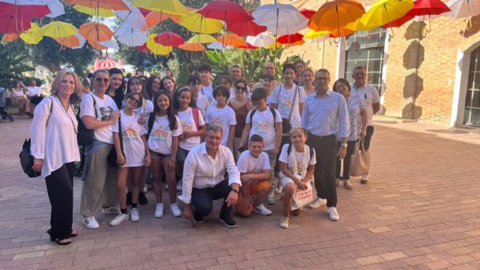 11 luglio 2025, 80 cortometraggi, finale della XIII edizione di School Movie Cinedù, a Capaccio Paestum, all’ombra del Tempio di Nettuno. Cuore del progetto è la Campania, ma sono coinvolte anche scuole di Puglia, Calabria, Umbria, Basilicata, Lazio, Emilia-Romagna, Lombardia e Toscana per raccontare dal loro punto di vista la felicità. La Scuola Secondaria di primo grado ha partecipato con la classe 1^B, coadiuvata anche dalla 1^ e dalla 2^C, con un corto dal titolo “Storia di una maglietta blu”, soggetto e sceneggiatura di Alessia Conpierchio, seguita dalle docenti Bardaro e Maglio. Sei le nomination per altri premi, poi le speranze dei ragazzi si avverano: primo posto, vincitori assoluti, questa la motivazione del premio: