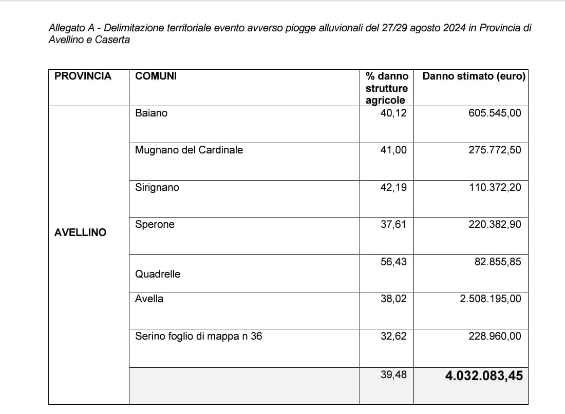 Il 27 e 29 agosto 2024, le province di Avellino e Caserta sono state duramente colpite da piogge alluvionali di eccezionale intensità, causando gravi danni alle strutture agricole e alle produzioni. In risposta a questo evento calamitoso, la Regione Campania ha intrapreso una serie di azioni per richiedere il riconoscimento dello stato di calamità naturale e attivare forme di ristoro per le aziende agricole colpite.
