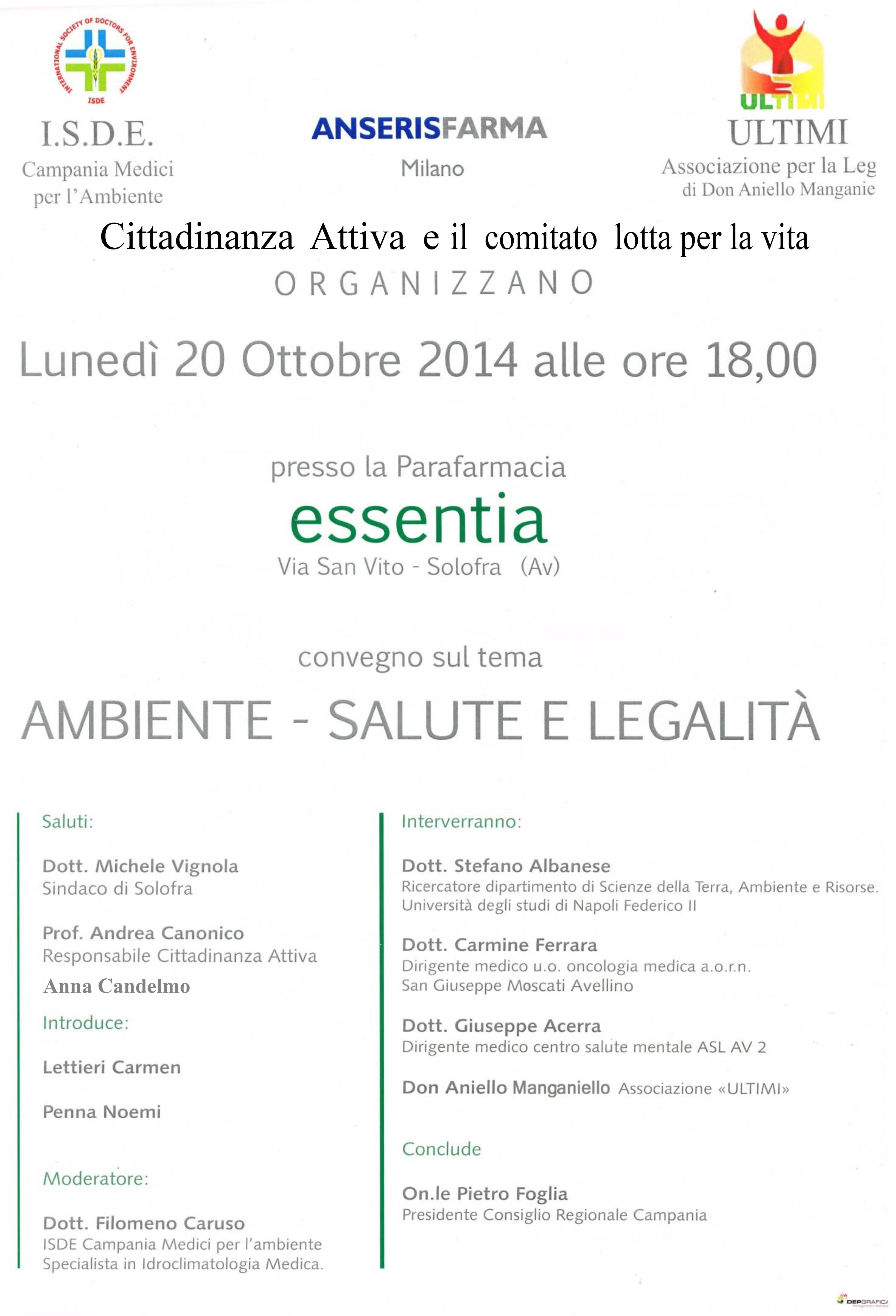 SOLOFRA. Convegno su Ambiente, Salute e Legalità, lunedi 20 ottobre