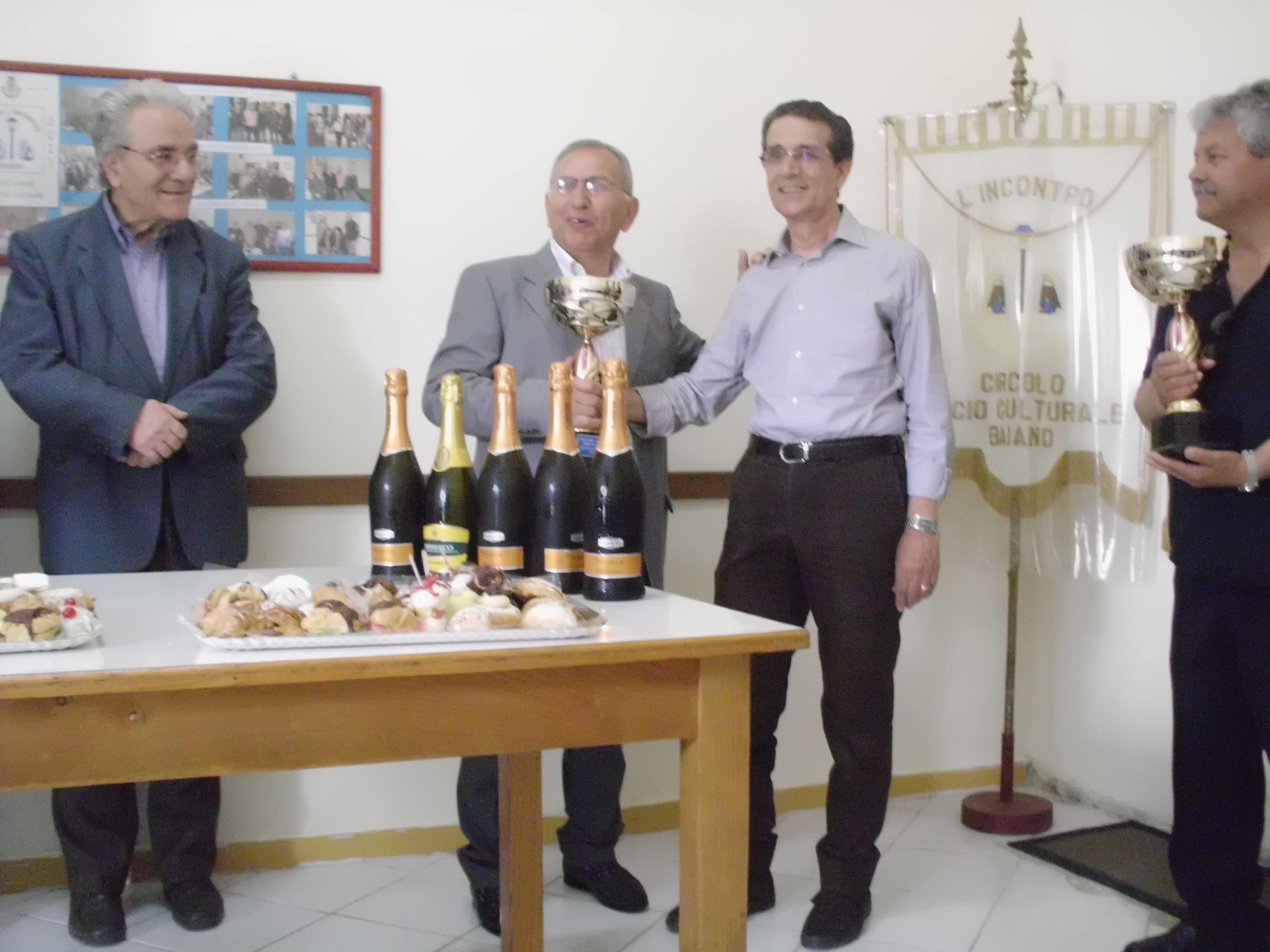 La cerimonia della premiazione nella sede de L’Incontro. La consegna delle coppe al duo vincente e alla coppia seconda piazzata, era fatta da Angelina Litto, Carmine Monteforte, Antonio Vecchione e Gianni Amodeo, in rappresentanza dei Circoli promotori del Torneo. Ed è in cantiere già la seconda edizione. “L’obiettivo- dicono Mario Stefano Montella e Giovanni Capiluongo– è puntato sulla realizzazione di una manifestazione, la cui formula serva a coinvolgere le associazioni di volontariato civico e i circoli sociali, operanti nei sei Comuni dell’Unione dell’Alto Clanio. Il positivo riscontro del Torneo appena concluso è un buon punto di partenza, tenendo presente anche il notevole numero di cultori, che il gioco amatoriale dello scopone scientifico vanta sul territorio”.