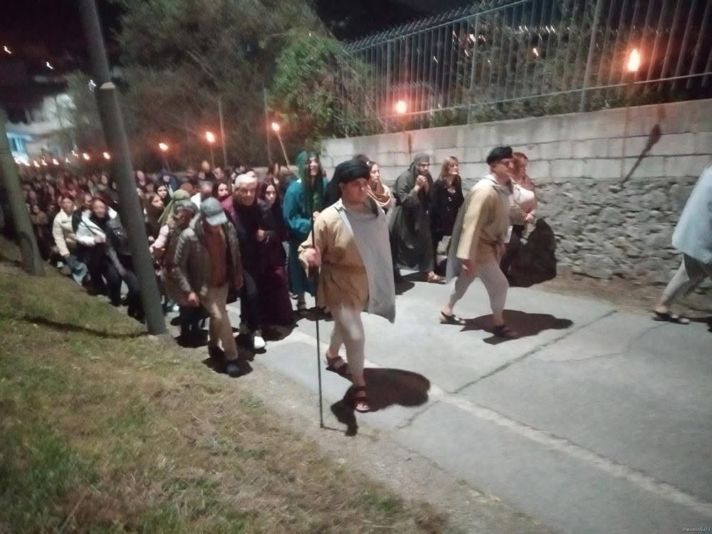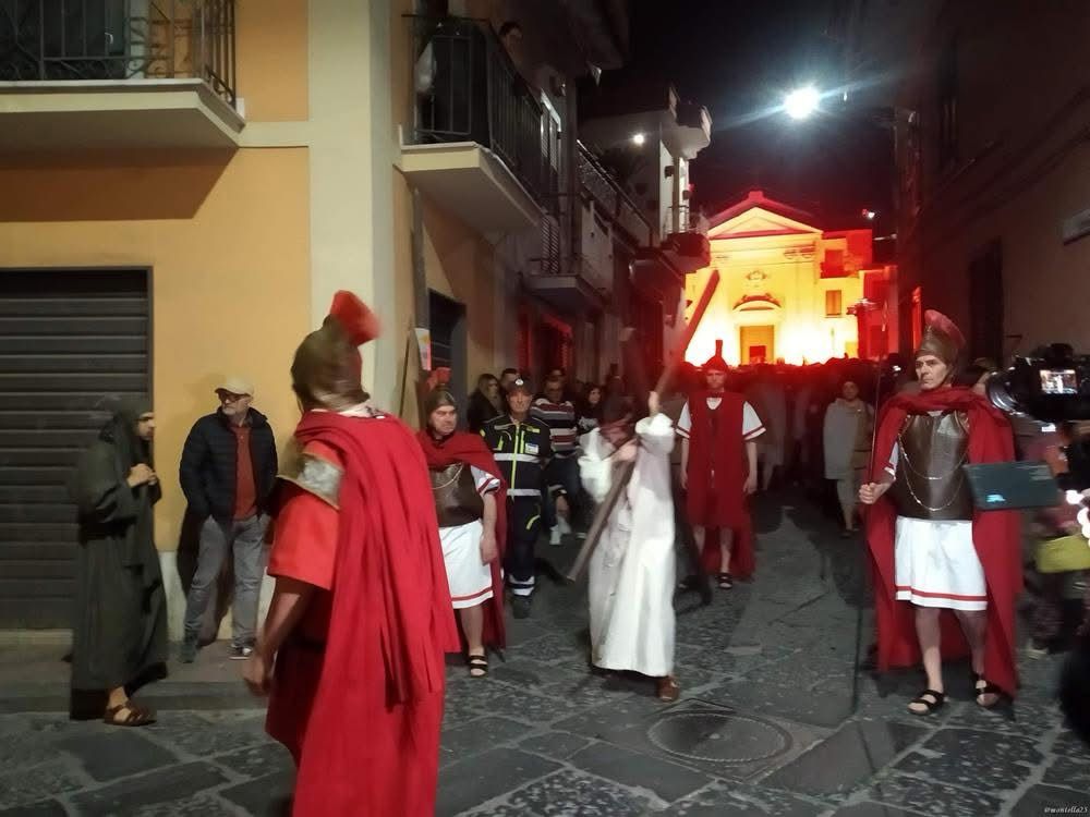 Quella vissuta a Baiano è stata una serata intensa, emozionante, profondamente coinvolgente. Il sagrato della chiesa di S. Stefano, prima, le strade del paese, poi, e la collina di Gesù e Maria per la scena finale della crocifissione si sono trasformate in un palcoscenico a cielo aperto, dove la fede e l’arte si sono fuse in un’unica grande emozione collettiva. Decine di bravissimi interpreti e figuranti hanno dato vita alle ultime ore di Gesù con dedizione, raccoglimento e una carica spirituale che ha toccato il pubblico presente, grazie anche ai testi riscritti dal regista Franco Scotto.