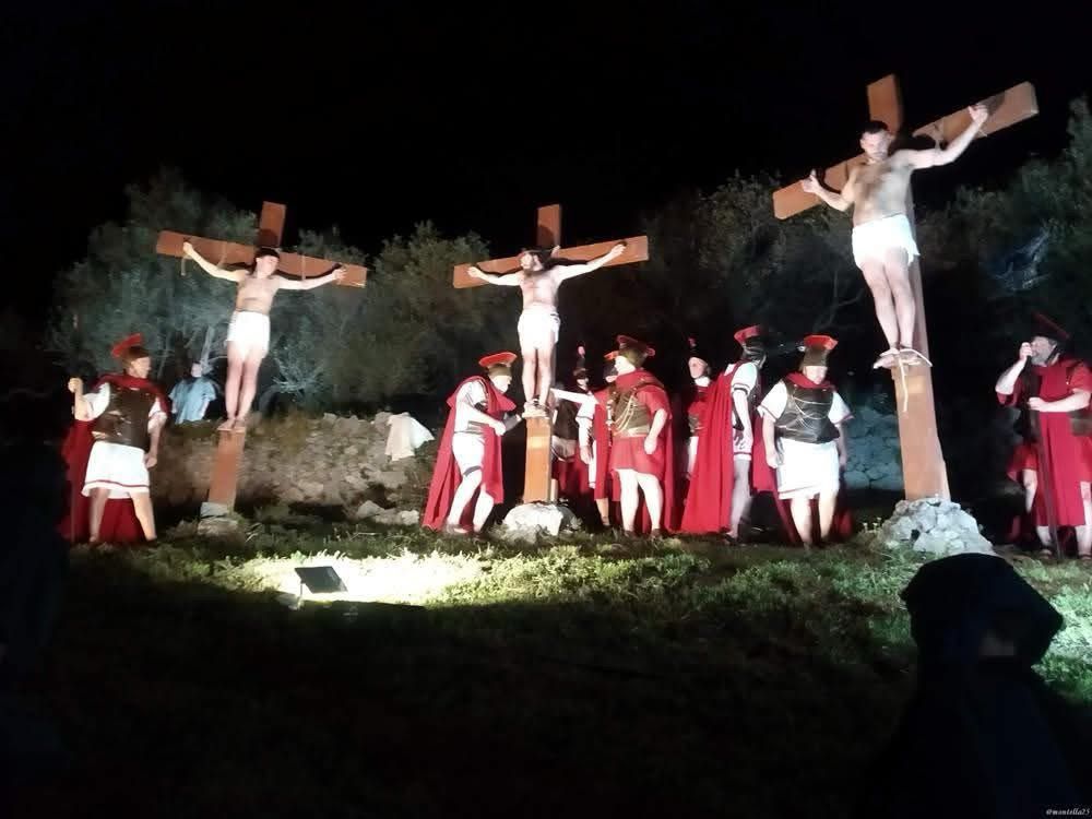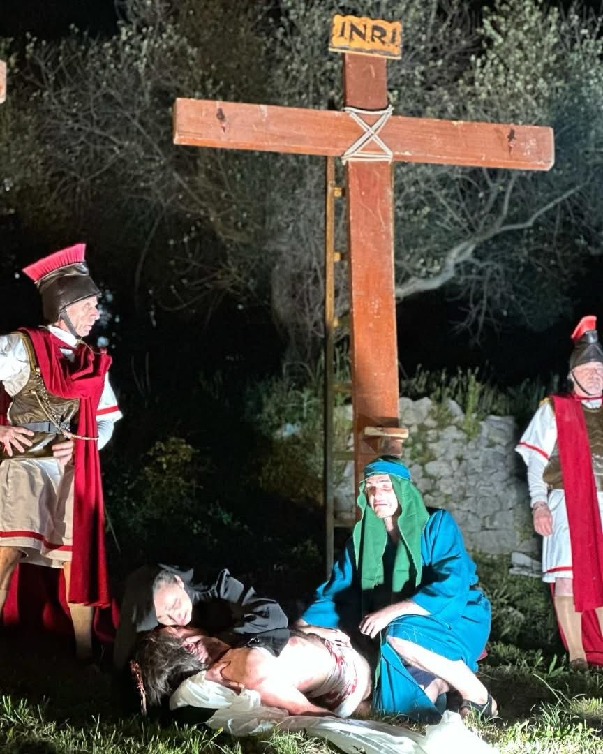 Non poteva mancare il caloroso ringraziamento del parroco don Fiorelmo, salito fino ai piedi delle tre croci, che ha apprezzato la fedele interpretazione fatta dei passi delle sacre scritture.