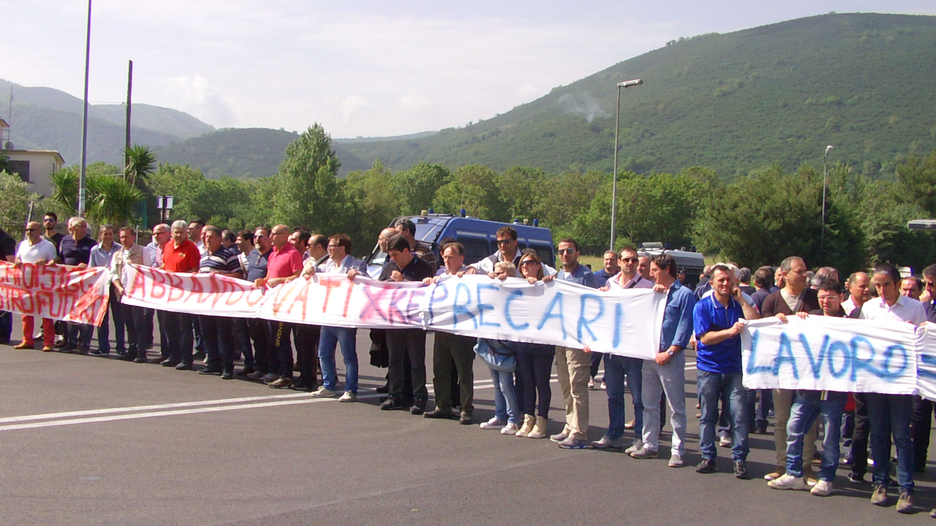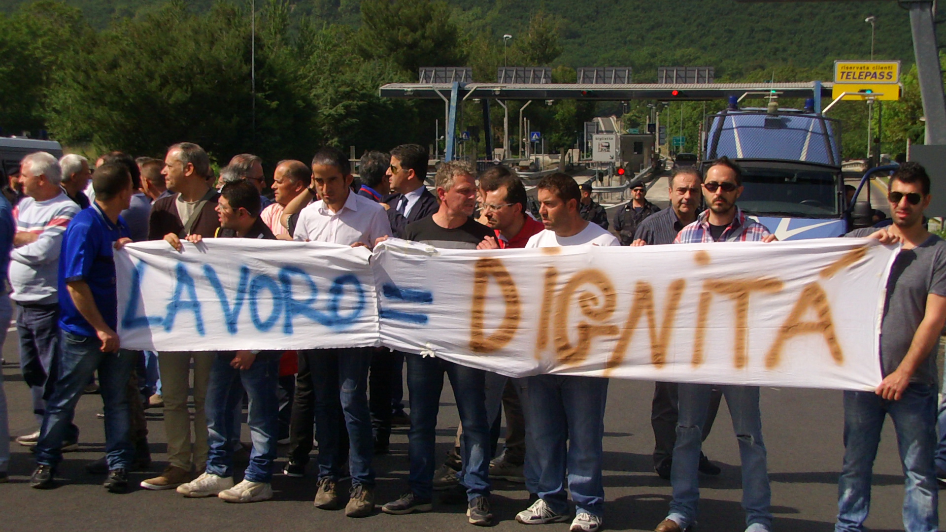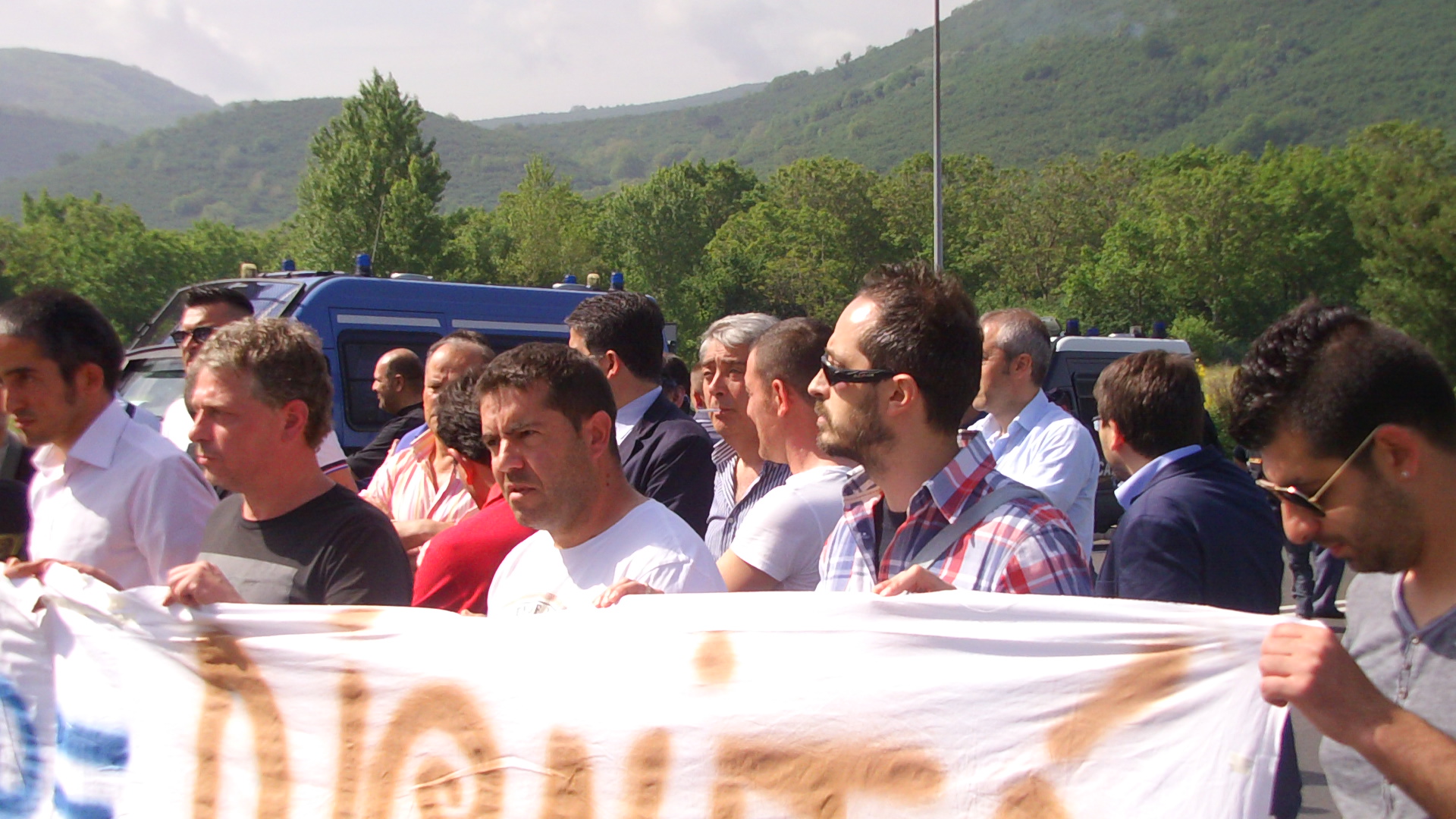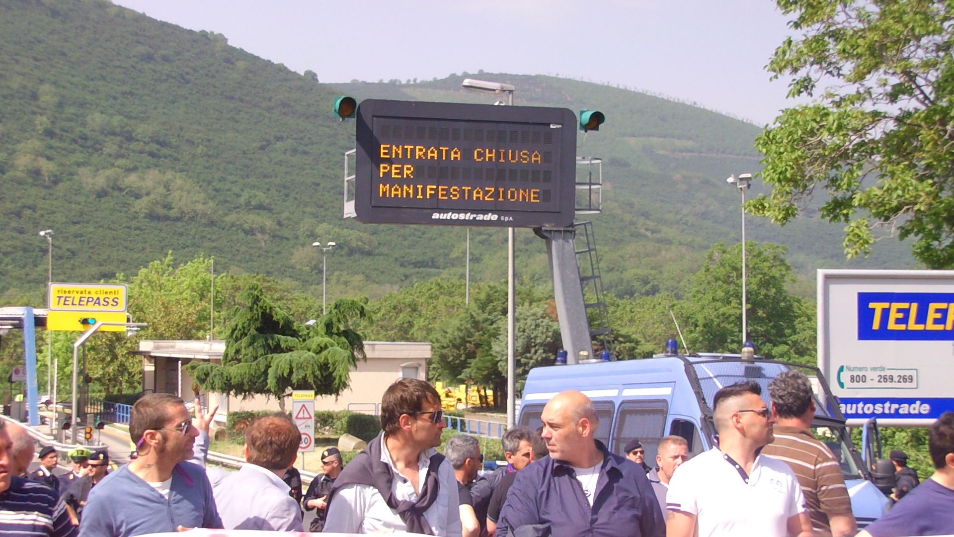 Si è svolta stamane la tanto attesa protesta dei Forestali della Comunità Montana Vallo Lauro – Baianese – Partenio organizzata dall’ex sindaco di Sperone Salvatore Alaia con il contributo degli operai e di tutti quelli che hanno a cuore la sorte dei lavoratori. Il casello autostradale è rimasto chiuso sia in entrata che in uscita per circa 10 minuti. Striscioni, slogan e tanta rabbia tra i circa cento lavoratori che stamane hanno preso parte alla protesta. Il tutto si è svolto nella massima tranquillità sotto gli occhi attenti di una trentina di poliziotti e diversi carabinieri del comando stazione di Baiano. Presenti il presidente della Comunità Montana nonchè sindaco di Avella, l’avv. Biancardi Domenico, nonché diversi sindaci del mandamento tra cui Marco Santo Alaia, sindaco di Sperone, Enrico Montanaro sindaco di Baiano e  il primo cittadino di Quadrelle Masi. Ecco le foto scattate, più tardi vi trasmetteremo sul canale web tv tutta la manifestazione e la discussione tenutasi tra gli operai e le autorità intervenute.