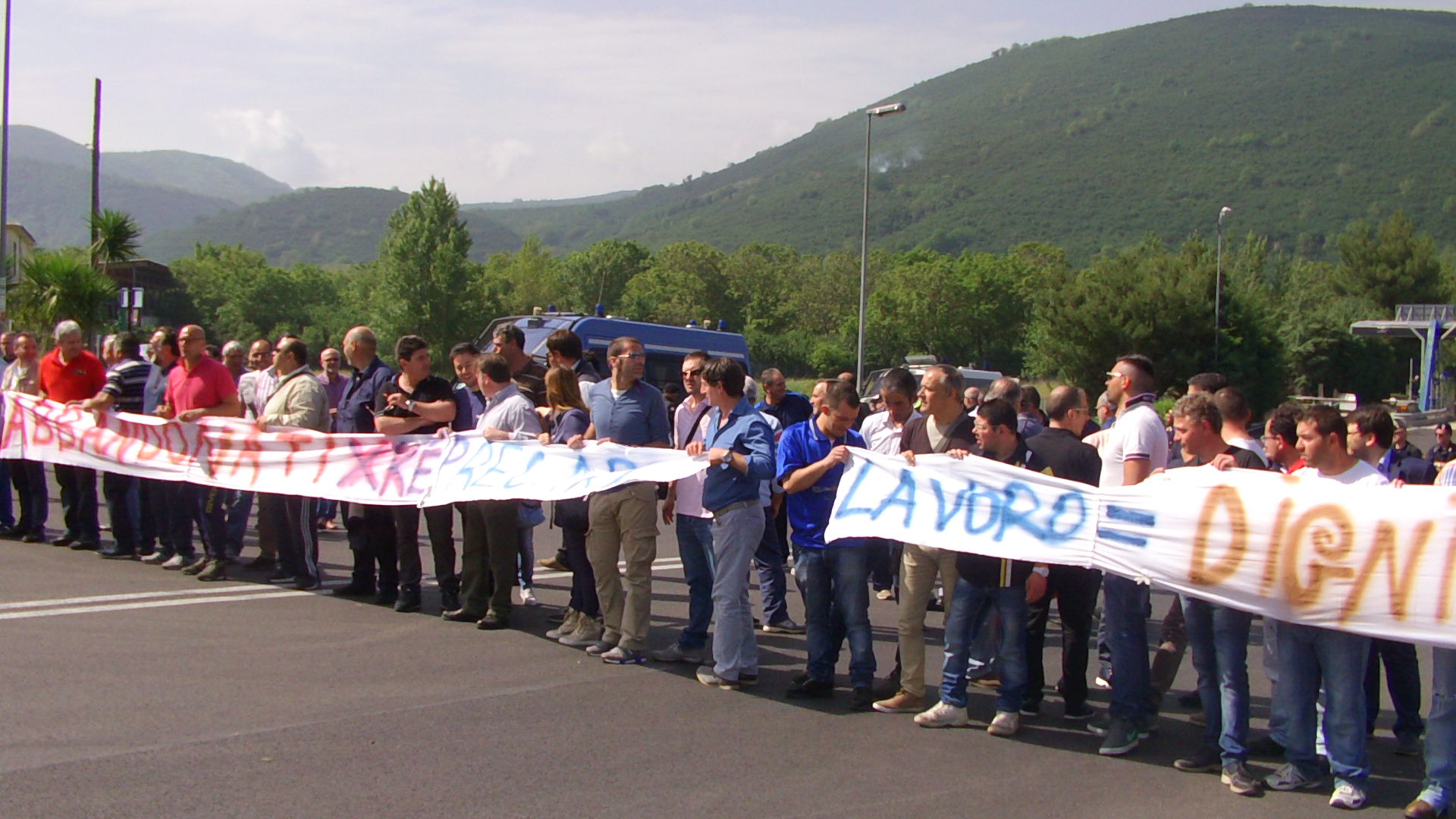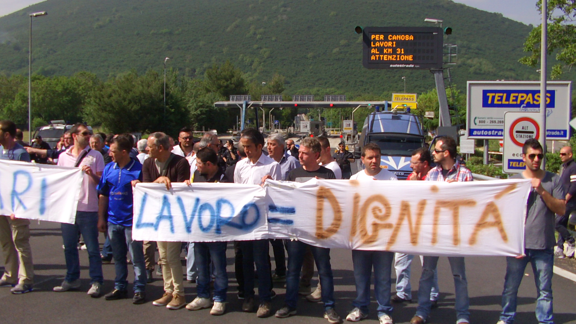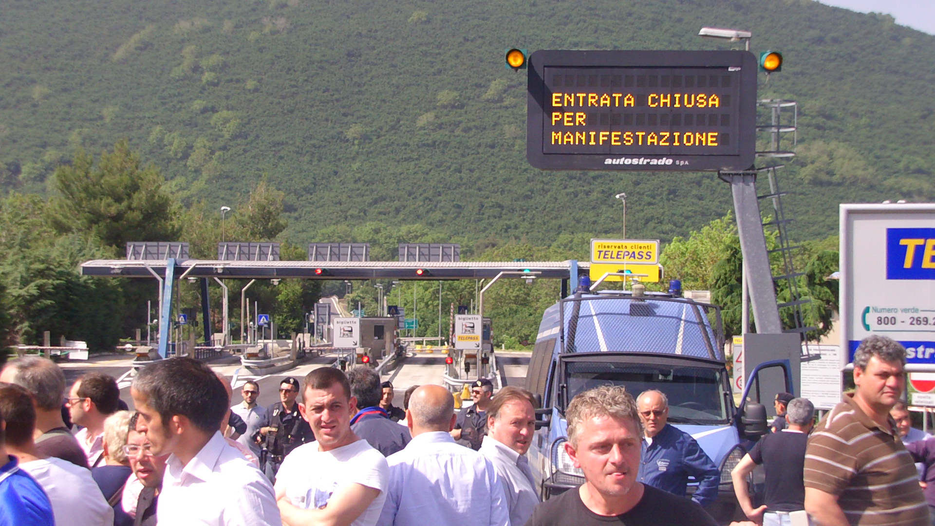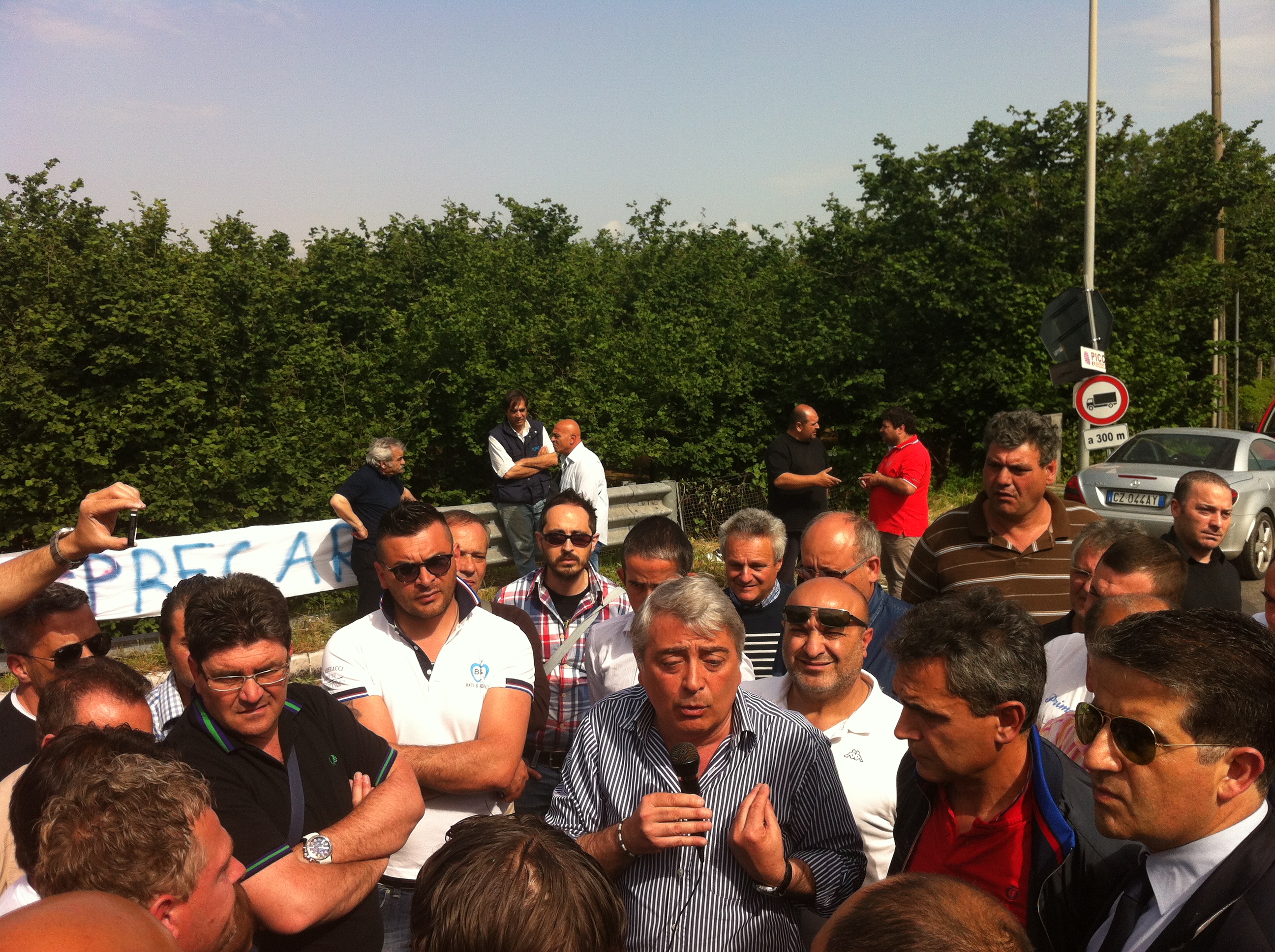 Si è svolta stamane la tanto attesa protesta dei Forestali della Comunità Montana Vallo Lauro – Baianese – Partenio organizzata dall’ex sindaco di Sperone Salvatore Alaia con il contributo degli operai e di tutti quelli che hanno a cuore la sorte dei lavoratori. Il casello autostradale è rimasto chiuso sia in entrata che in uscita per circa 10 minuti. Striscioni, slogan e tanta rabbia tra i circa cento lavoratori che stamane hanno preso parte alla protesta. Il tutto si è svolto nella massima tranquillità sotto gli occhi attenti di una trentina di poliziotti e diversi carabinieri del comando stazione di Baiano. Presenti il presidente della Comunità Montana nonchè sindaco di Avella, l’avv. Biancardi Domenico, nonché diversi sindaci del mandamento tra cui Marco Santo Alaia, sindaco di Sperone, Enrico Montanaro sindaco di Baiano e  il primo cittadino di Quadrelle Masi. Ecco le foto scattate, più tardi vi trasmetteremo sul canale web tv tutta la manifestazione e la discussione tenutasi tra gli operai e le autorità intervenute.
