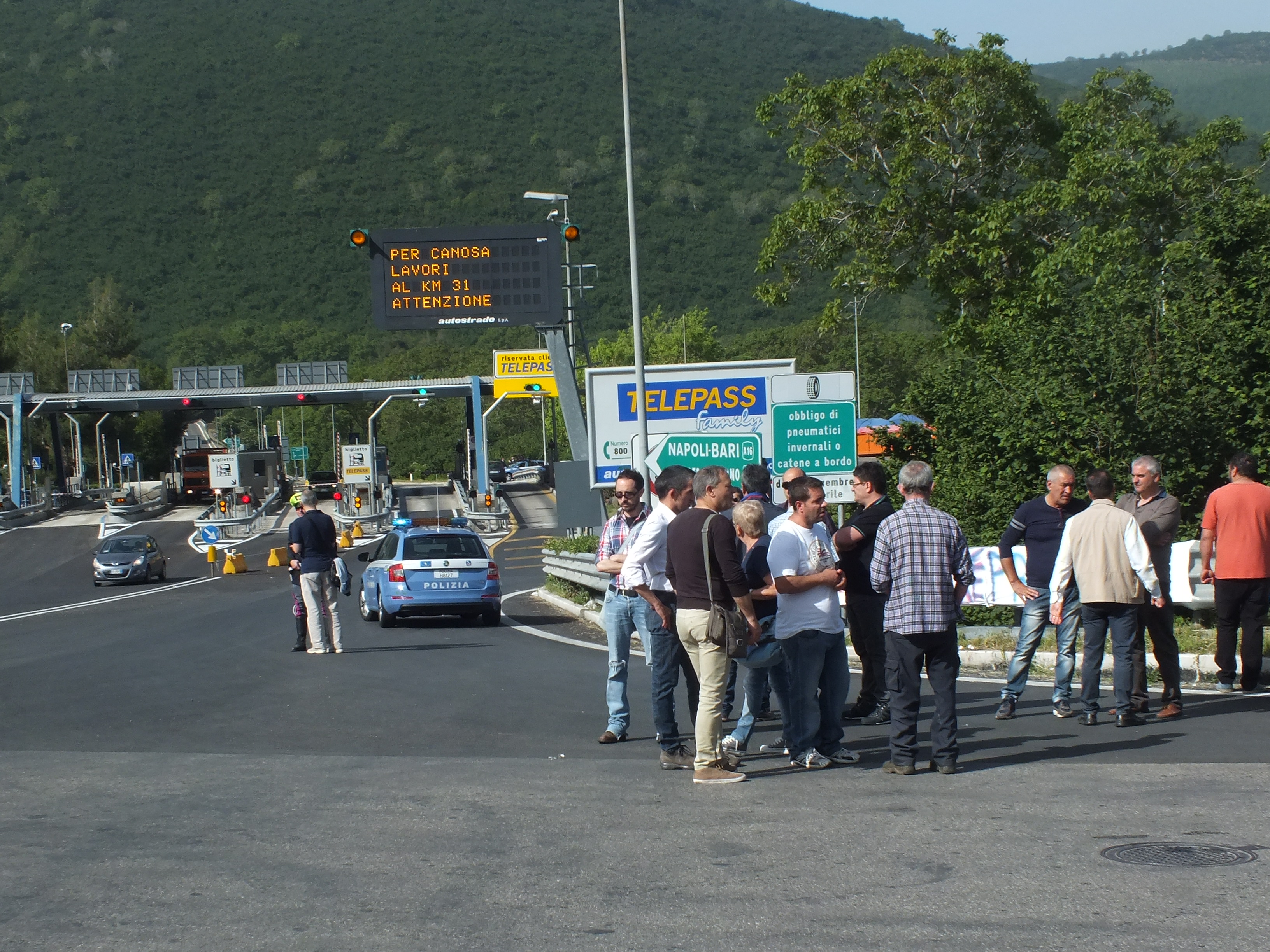 Ecco le 56 foto scattate stamane alla manifestazione dei forestali che hanno simbolicamente e per soli 10 minuti occupato il casello autostradale non consentendo ne l’entrata che l’uscita dei veicoli. (Clicca per ingrandire)