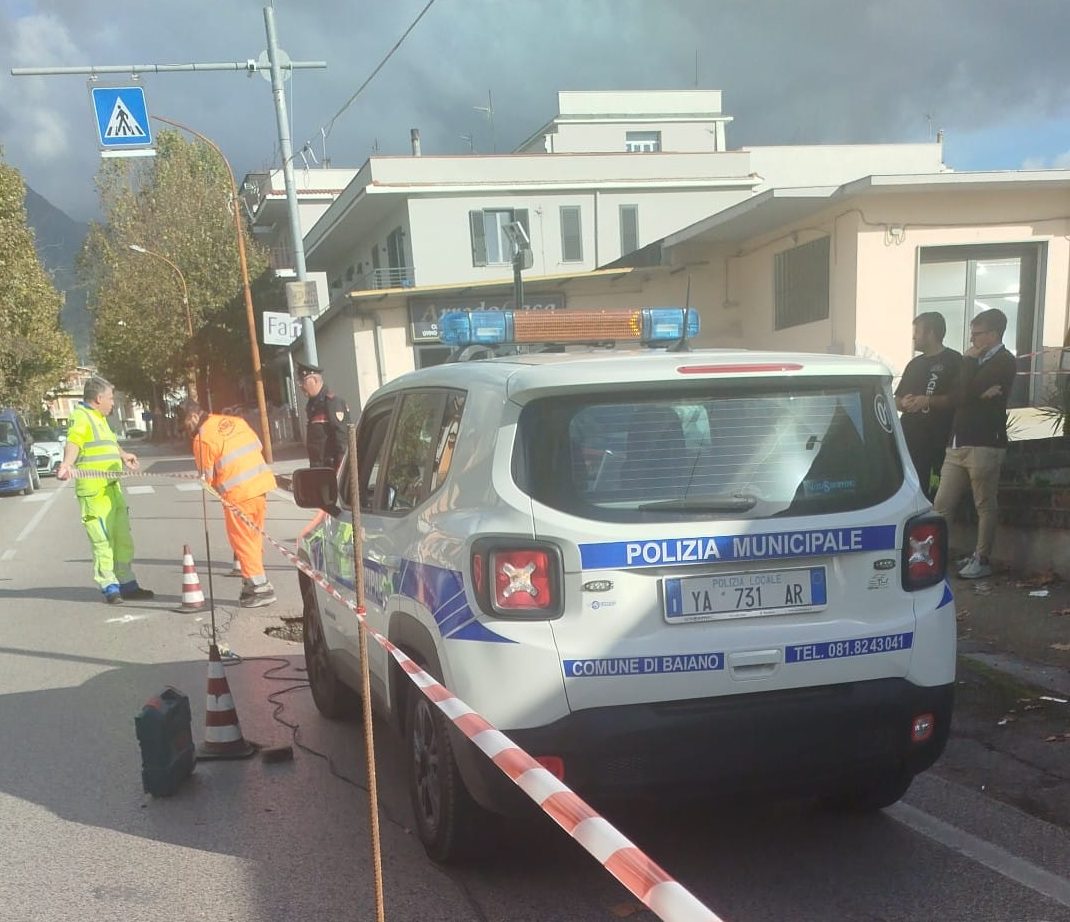 Immediato l’intervento della Polizia Municipale di Baiano, supportata dai Carabinieri della Compagnia locale, che hanno provveduto a delimitare l’area e a mettere in sicurezza la zona, in attesa dei lavori di ripristino da parte degli enti competenti.