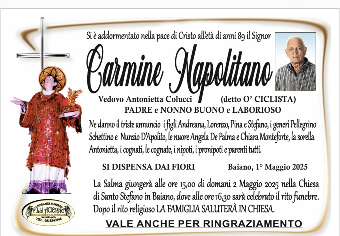 Carmine Napolitano ci lascia, ma il suo ricordo resta vivo nel cuore di Baiano.