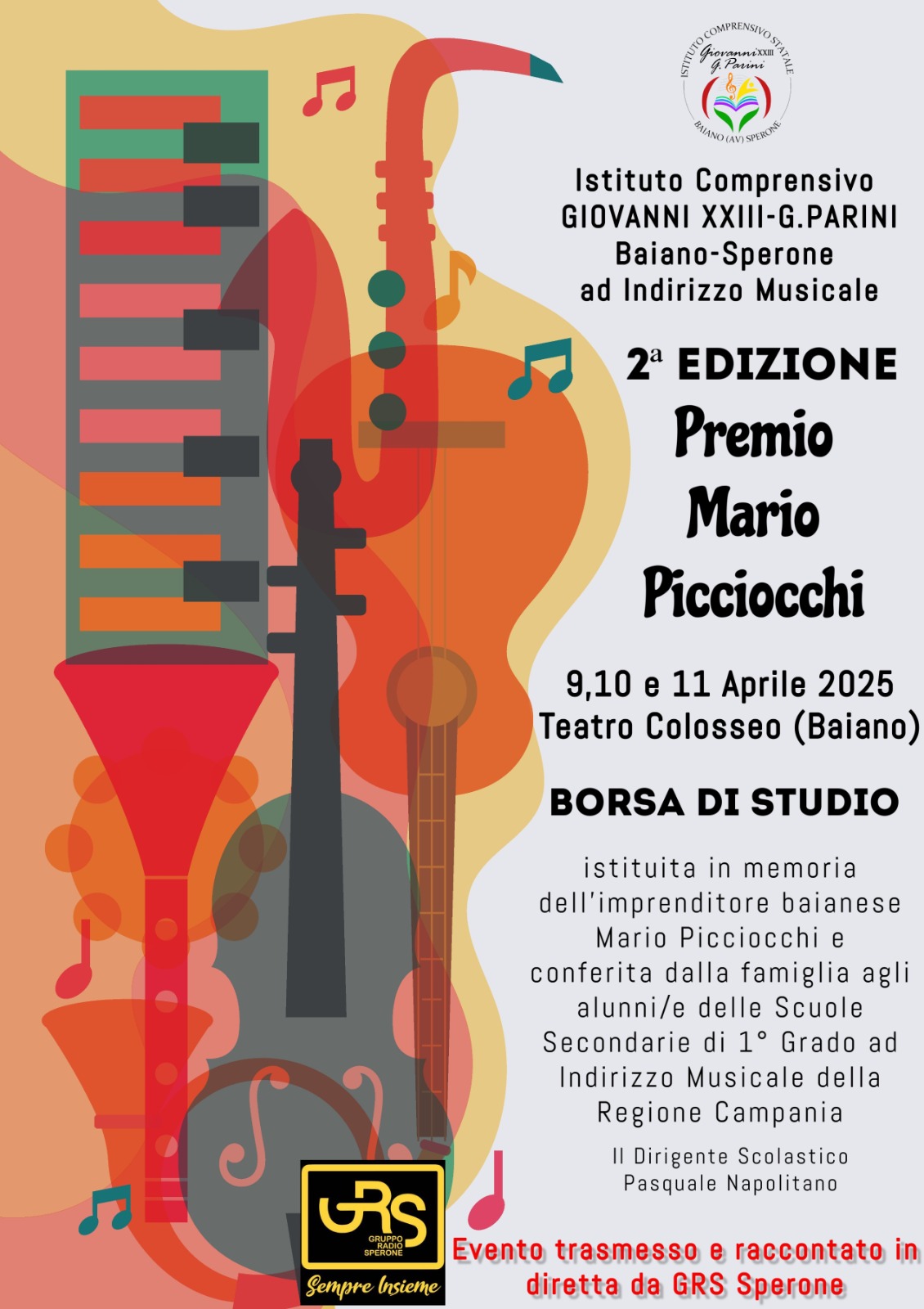 Si conclude oggi, 11 aprile 2025, la Seconda Edizione del Premio Musicale “Mario Picciocchi, un progetto che in tre intense giornate ha trasformato l’Istituto Comprensivo “Giovanni XXIII – Giovanni Parini” di Baiano/Sperone in un palcoscenico regionale per giovani musicisti provenienti da tutta la Campania.