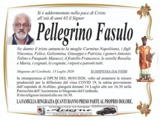 Ne danno il triste annuncio la moglie Carmina Napolitano, i figli Vincenza, Felice, Gelsomina, Giuseppe e Patrizia, i generi Antonio Tulino e Pasquale Masucci, il fratello Francesco, le sorelle Rosalia e Maria, i cognati, le […]