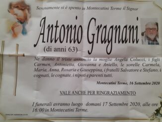 Ne danno triste annuncio la moglie Angela Colucci, i figli Carmen, Antonietta, Giovanna e Aniello, le sorelle Carmela, Maria, Anna, Rosaria e Giueppina, i fratelli Salvatore e Stefano, i cognati, le cognate, i nipoti e […]