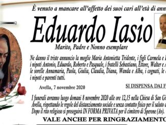 Ne danno il triste annuncio la moglie Maria Antonietta Tridente, i figli Carmela e Roberto, i nipoti Antonio, Eduardo, Roberto e Pasquale, i fratelli Sebastiano, Ettore, Walter e Augusto, le sorelle Annamaria, Paola, Giulia, Claudia, […]