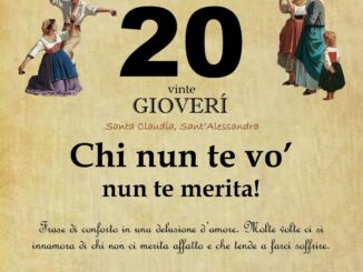 di Gianni PolverinoSantu Luca s ’è spassato.Esclamazione usata per decantare la bellezza celestiale della donna. Si dice che il santo oltre ad essere un medico era anche pittore e abbia raffigurato per primo la Madonna […]