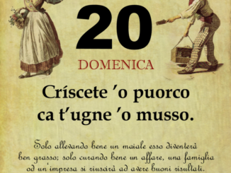 Mettere a uno ncopp’a nu puorco. Mettere uno a cavallo di un porco. Sparlare di una persona. La locuzione risale ai tempi antichi, quando al popolo gli era consentito di portare alla gogna un condannato sul dorso di […]