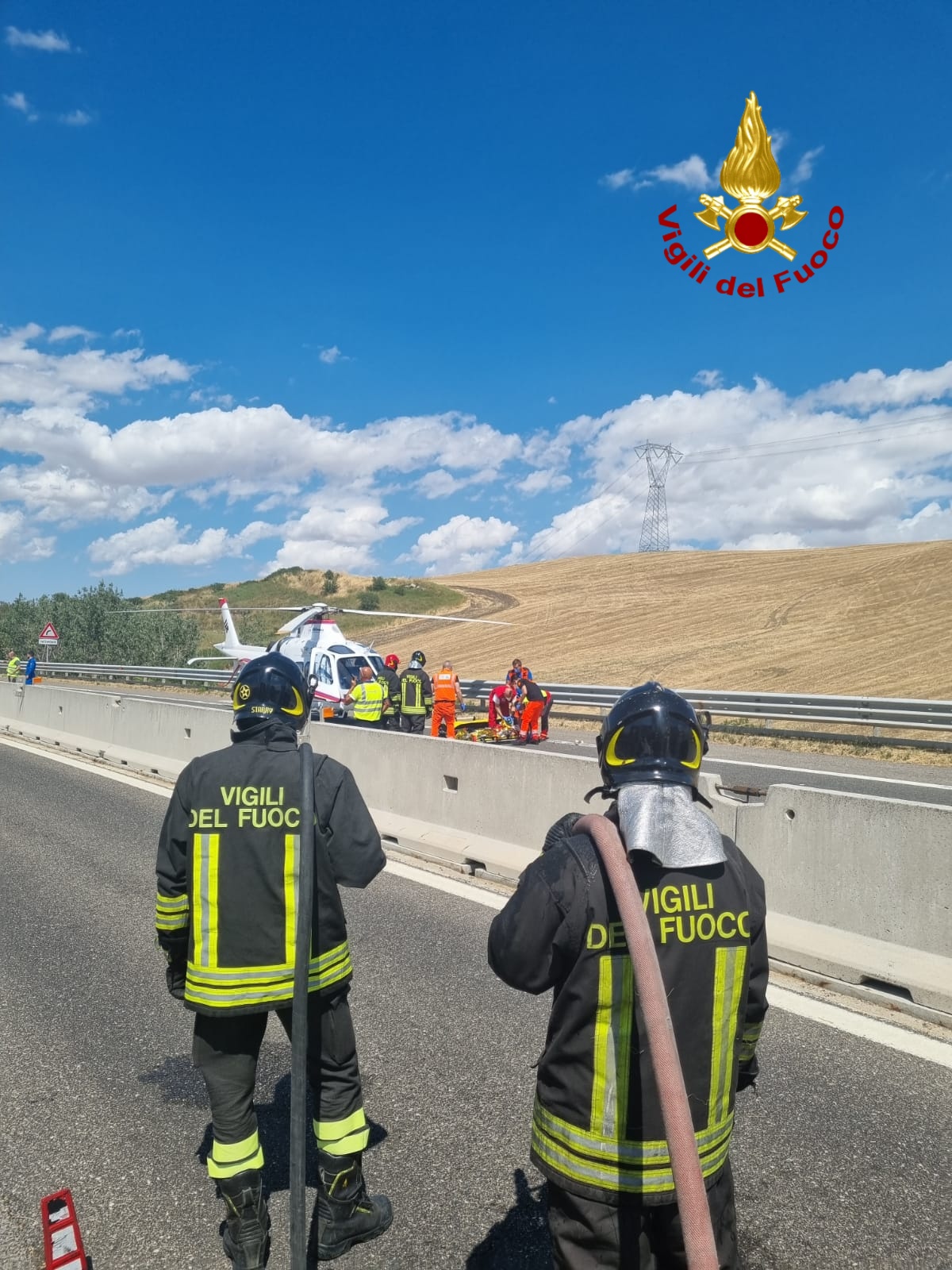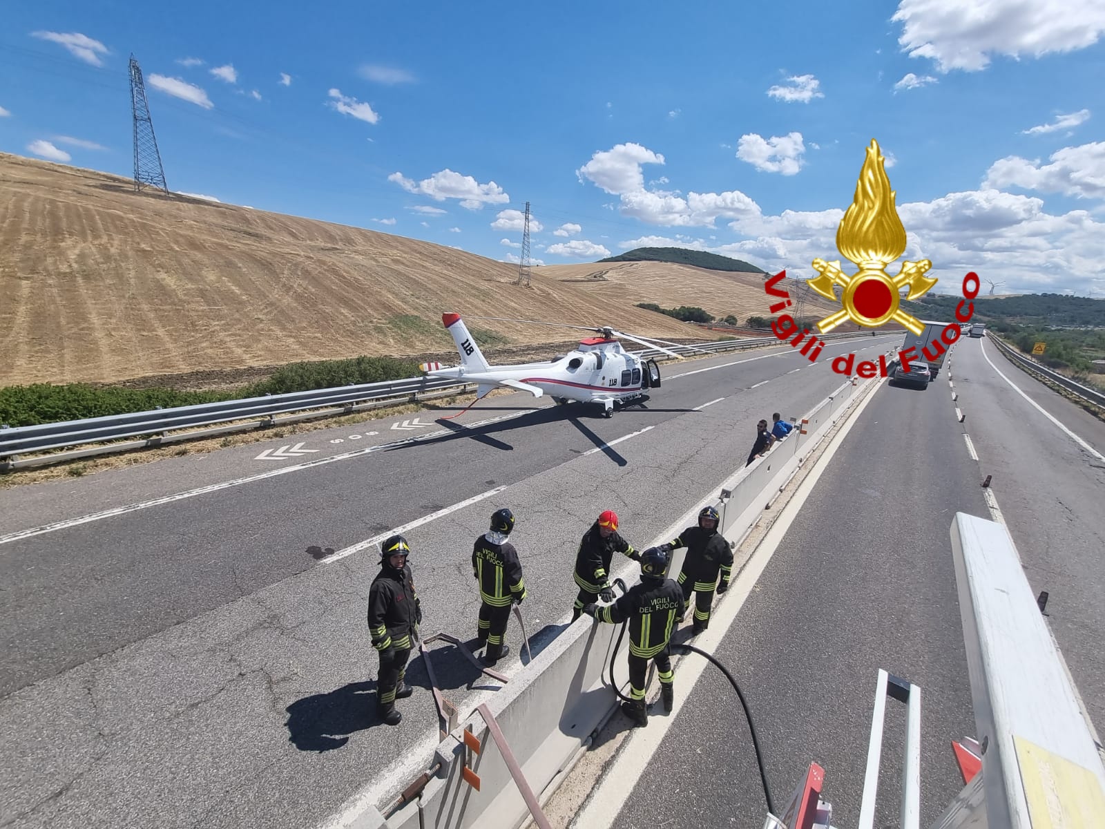 La squadra dei Vigili del Fuoco del distaccamento di Bisaccia, intorno alle ore 14’00 di oggi 11 luglio, è intervenuta sull’autostrada A16 Napoli – Canosa, al Km. 115,200, nel territorio del comune di Lacedonia, proprio al confine con la Puglia, per un incidente stradale che ha visto coinvolta una sola autovettura la quale sbandava e finiva contro il guard rail. A bordo dell’auto cinque persone, una famiglia di origine Albanese, proveniente da Roma e diretta a Bari per imbarcarsi per l’Albania. Nel violento impatto una donna rimaneva incastrata nell’abitacolo, e dopo essere stata liberata veniva affidata ai sanitari del 118 intervenuti, i quali viste le gravi condizioni veniva trasportata dall’eliambulanza presso l’ospedale di Foggia per essere sottoposto a cure mediche. Anche il marito e i tre figli rimanevano feriti, e venivano sempre trasportati a Foggia in ospedale. Per effettuare l’assistenza in atterraggio e decollo del velivolo, si è reso necessario anche l’intervento della squadra del distaccamento di Grottaminarda. Il veicolo incidentato è stato messo in sicurezza.