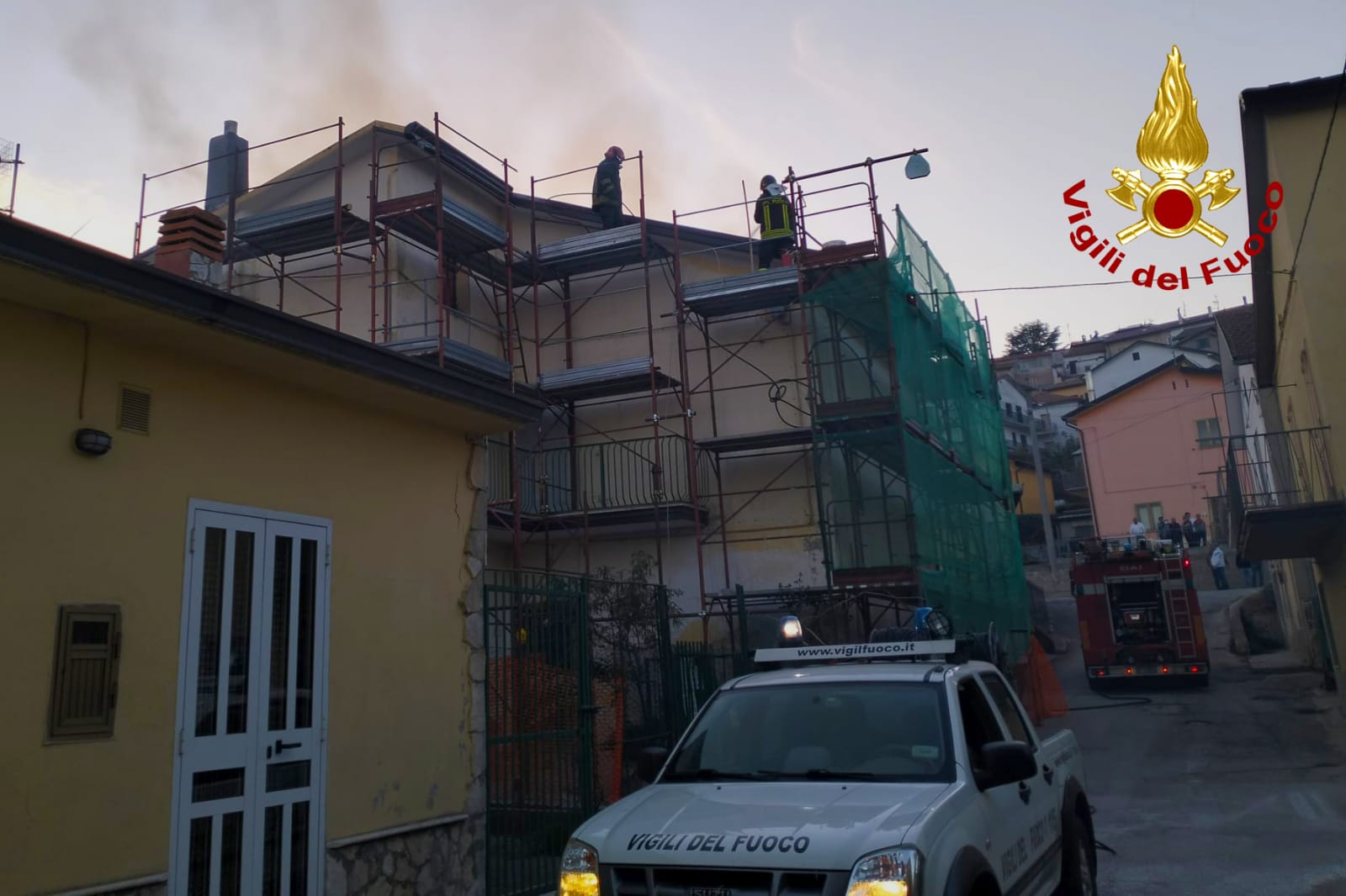 La squadra dei Vigili del Fuoco del distaccamento di Bisaccia alle ore 16’00 di oggi due novembre, è intervenuta nel comune di Vallata in via Dei Tulipani, per un incendio che ha interessato il tetto in legno di un’abitazione di due piani fuori terra in ristrutturazione. All’arrivo della squadra alte lingue di fuoco si levavano dal tetto della struttura, e la sala operativa del Comando di via Zigarelli ha inviato in supporto un’autobotte. Le fiamme sono state spente con non poche difficoltà, visto che la struttura era circoscritta da impalcatura, e compreso la messa in sicurezza l’intervento è durato più di quattro ore.
