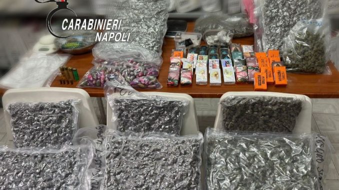 Durante le perquisizioni effettuate nelle abitazioni e nelle aree comuni, i militari hanno rinvenuto in un’area condominiale 14 chili di marijuana nascosta in 13 buste sottovuoto che erano state messe all’interno di un’intercapedine del muro.