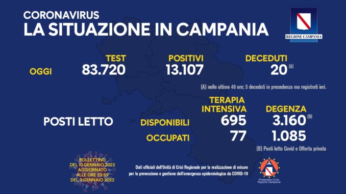 CAMPANIA. Coronavirus, oggi 13107 nuovi positivi e 20 decessi