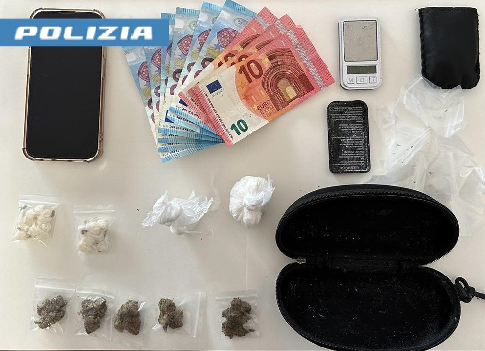 I poliziotti, dopo averlo recuperato, hanno rinvenuto al suo interno 5 involucri di marijuana del peso di 6.5 grammi circa, 22 dosi di cocaina del peso di 6.5 grammi circa, 2 involucri della stessa sostanza del peso di 35 grammi circa, un bilancino di precisione e diverso materiale per il confezionamento della droga; all’interno dell’abitazione , gli operatori hanno rinvenuto un telefono cellulare e 150 euro, chiaro provento dell’attività delittuosa.