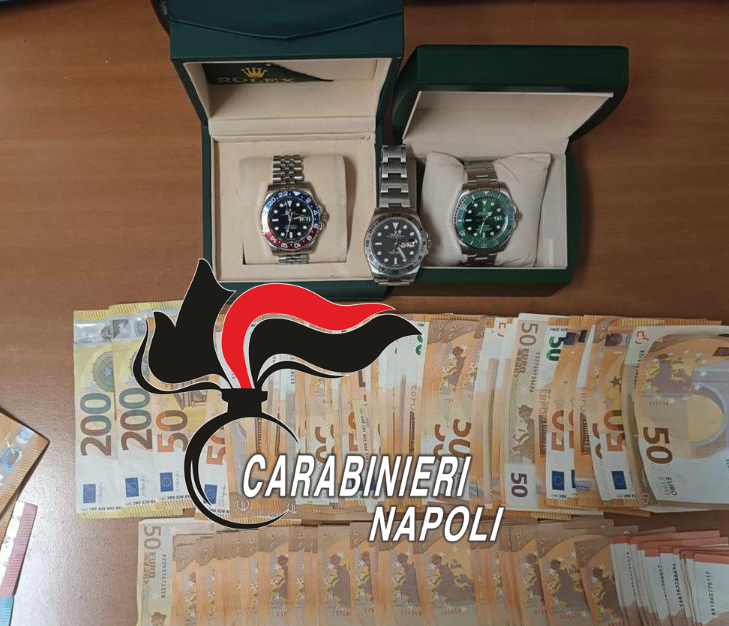Nell’abitazione di un 43enne di Brusciano i militari hanno rinvenuto e sequestrato 5mila euro di dubbia provenienza e 3 Rolex sui quali sono in atto accertamenti.